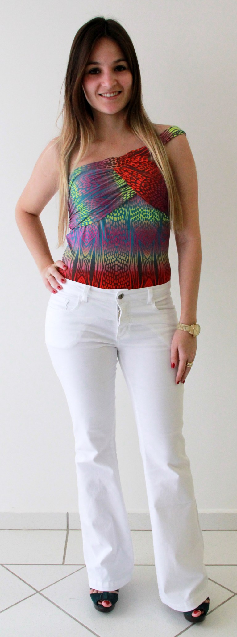 Muita gente se pergunta: “Todo mundo pode usar calça flare?” E aqui vai a resposta.. SIM!! Calça flare não tem contraindicações. O cós alto define a cintura e as pernas mais largas apartir do joelho ajudam a equilibrar quadris amplos. A herança 70’s veio pra ficar! Se você é mignon use-a com meia pata e deixe que a barra cubra o salto.