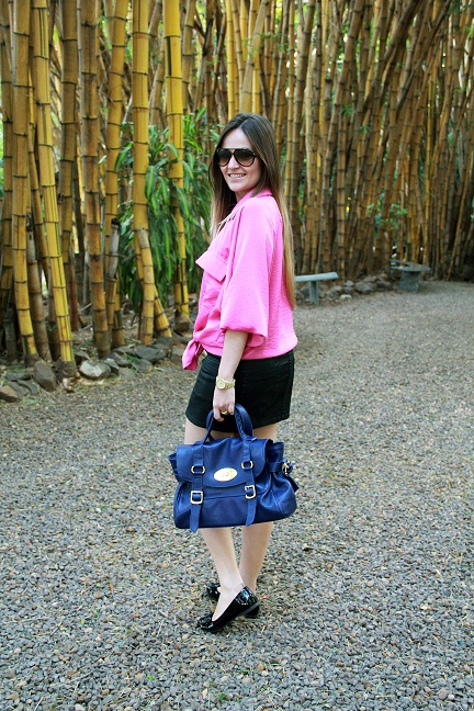 Como faz muito calor na cidade pérola, optei por uma saia de “couro” (não é couro exatamente, o material traz a textura parecida com um courinho, mas bem mais leve pra usar nesse calorzão) e uma camisa de seda, que tem uma leveza ímpar e além de ficar um look confortável, fica com aquele ar “arrumadinho”. A sapatilha de verniz dá uma delicadeza ao look, já a bolsa dá uma quebrada e deixa a produção mais despojada.