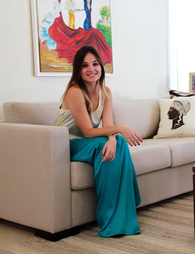 Nesse look, ela veio acompanhada de um tecido mais sofisticado, que juntamente com a blusa de seda e o cinto, ficou com um ar mais arrumadinho e elegante! Assim, você está pronta pra um jantar com o amado ou até mesmo um batizado pela manhã. Pois mesmo sendo um look mais chique, traz cores vibrantes, alegres, podendo ser usado durante o dia.