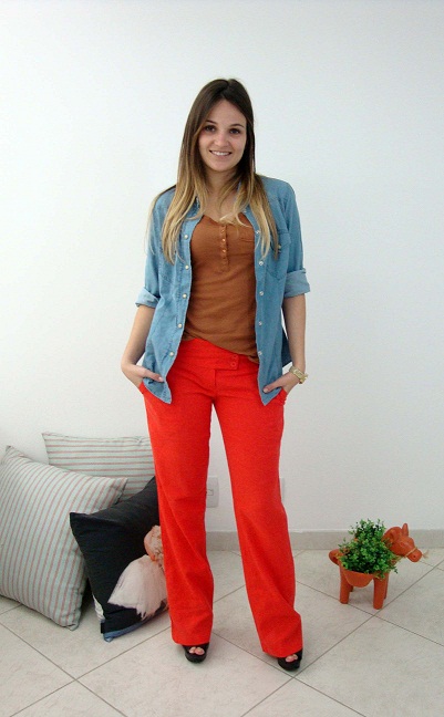21/11/2011 Look do dia Estou com preguiça, então serei breve, hehehehe!!! Meu look de hoje é esse: calça de linho vermelha + t-shirt camelo + camisa jeans. Look: Camisa: Zara, T-shirt: Zara, Calça: Impactto Modas, Relógio: Michael Kors e Sandália: Schutz Compartilhe isso:TweetCurtir Carregando... Relacionado