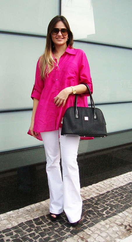 Minha recente aquisição foi essa camisa pink, coloquei com um flare branca e usei pra ir ao Shopping Morumbi fazer umas comprinhas!