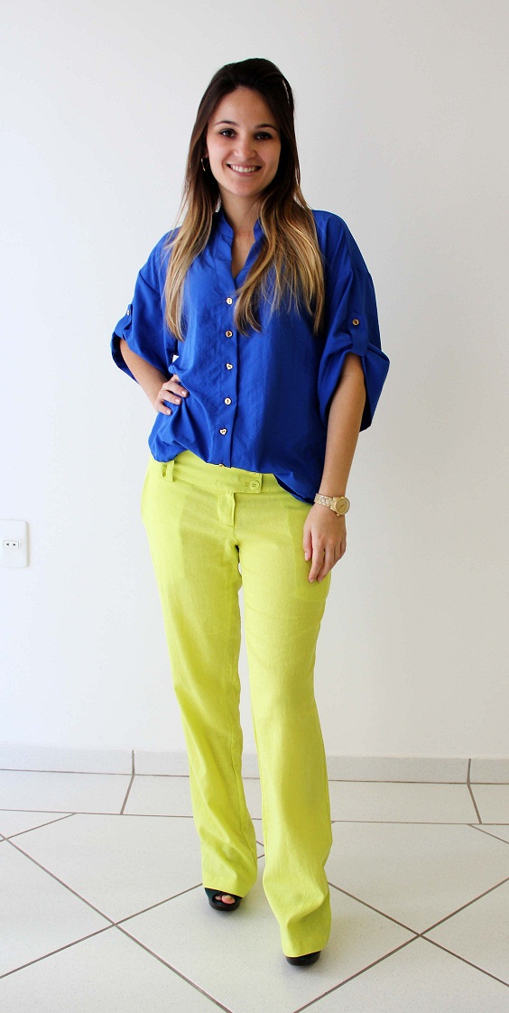 O color block já ganhou seu espaço. Pensando nisso a Impactto Modas escolheu um look para inspirar vocês nessa sexta-feira. A combinação é amarelo + azul.