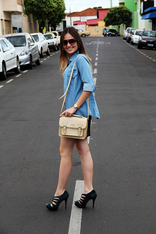 Look do dia: T-shirt e Camisa: Zara, Saia: Impactto Modas, Bolsa e Sandália: Schutz, Relógio: Michael Kors e Óculos: Ray-Ban.