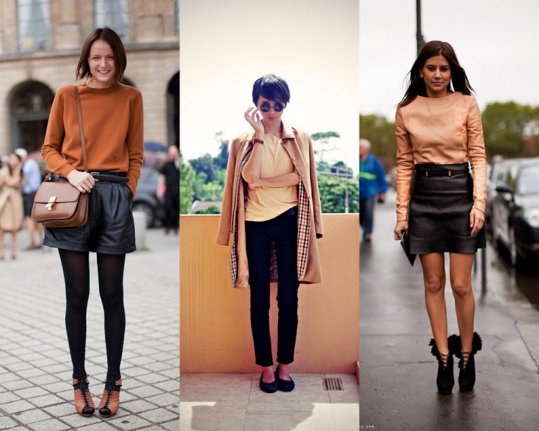 Use a cor com peças alfaiatarias ou com o casual-clássico jeans; nos tons neutros: branco, bege e nude ficam um arraso! Eu usei a t-shirt camelo com uma saia de couro marrom e joguei uma camisa jeans por cima. Ps: Couro? Pois é, o couro se tornou uma peça atemporal e continua em alta.