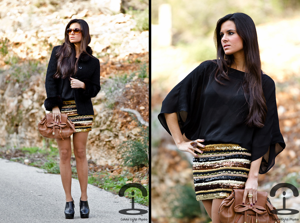 Inspiração Fashion: Bata total black + saia bordada com paetês.