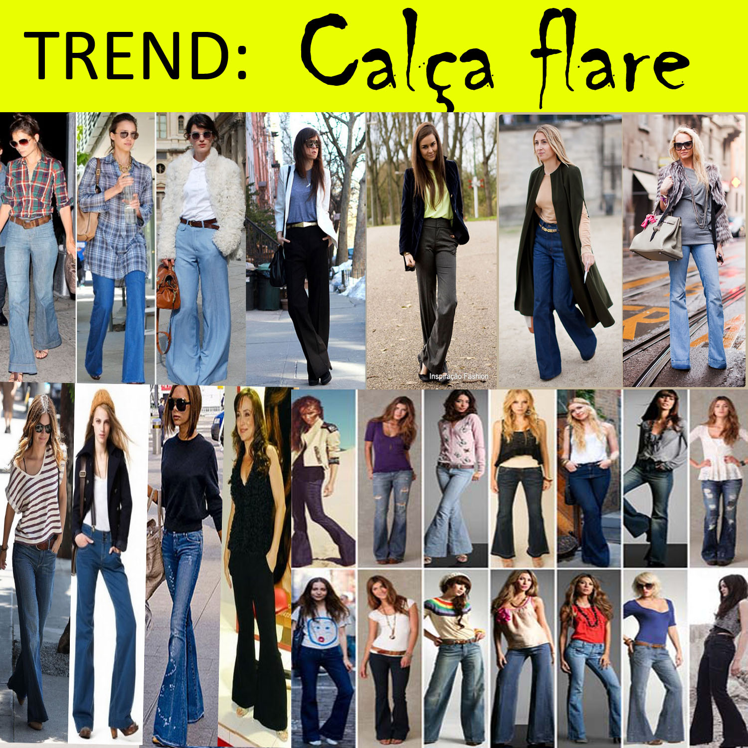 CALÇA FLARE: A queridinha de 2011 foram as calças flare. Modelos jeans ou de tecidos mais finos alongam e afinam a silhueta.