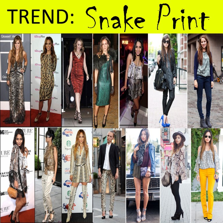 SNAKE PRINT: Para as apaixonadas por animal print, as estampas de cobra apareceram em vários desfiles e ganharam as ruas, deixando a boa e velha estampa de oncinha em segundo plano. A estampa de cobra é mais sofisticada e chique, chegou de mansinho e conquistou.