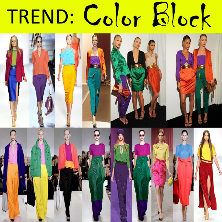 COLOR BLOCK: O color block é uma tendência que mistura diferentes cores em um look só, com peças que contrastam tons frios com quentes ou harmonizam os semelhantes (por exemplo, pink com lilás; verde bandeira com lima, etc). Some peças de roupa minimalistas, ou seja, aquelas sem estampas ou com muitos detalhes.