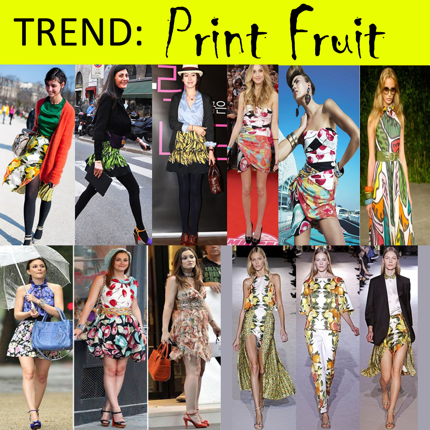 PRINT FRUIT: Apresentada por grifes famosas, as estampas de frutas apareceram em saias e vestidos e ganhou o gosto das fashionistas mais ousadas.
