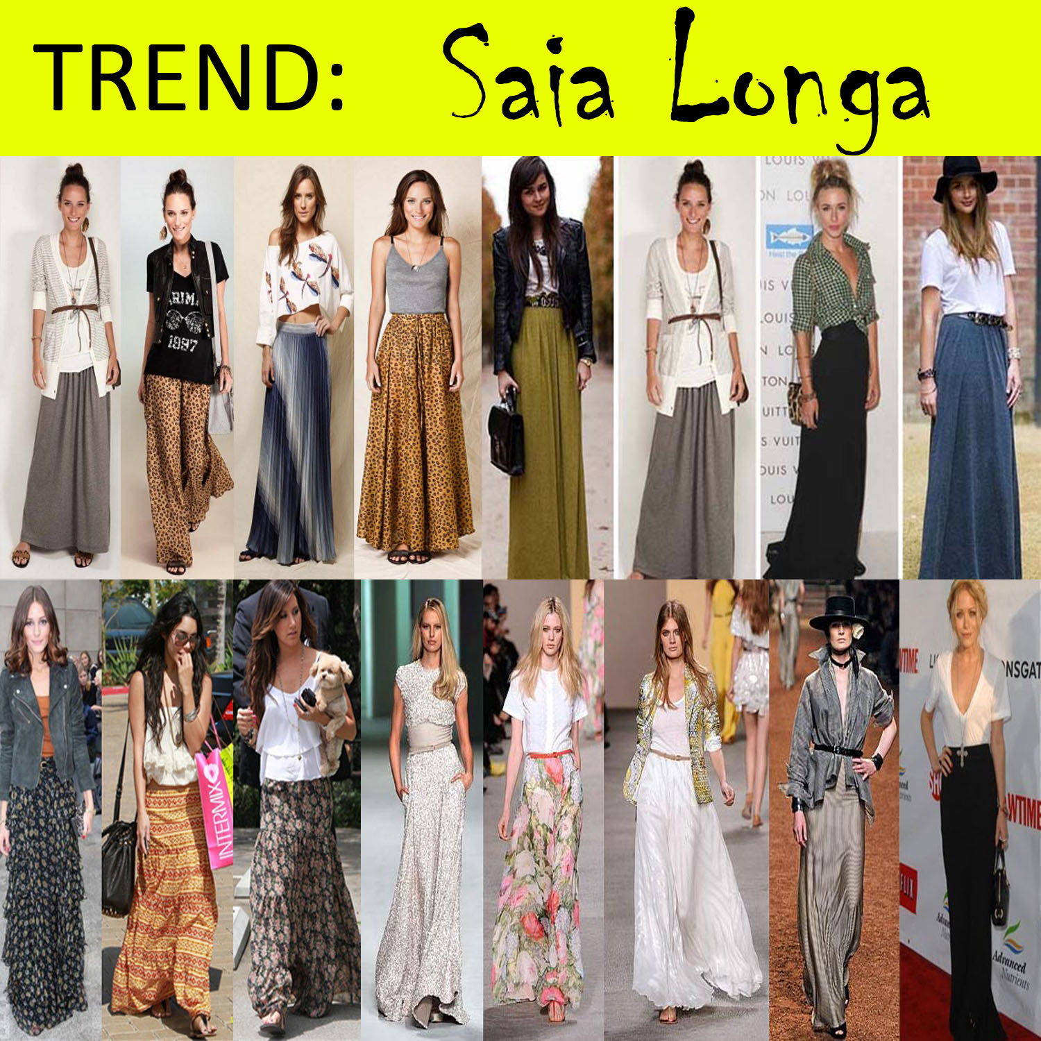 SAIA LONGA: A tendência que chegou com mais força e dominou geral, com certeza foi a das saias longas. Pela versatilidade e praticidade conquistou e ganhou as ruas.