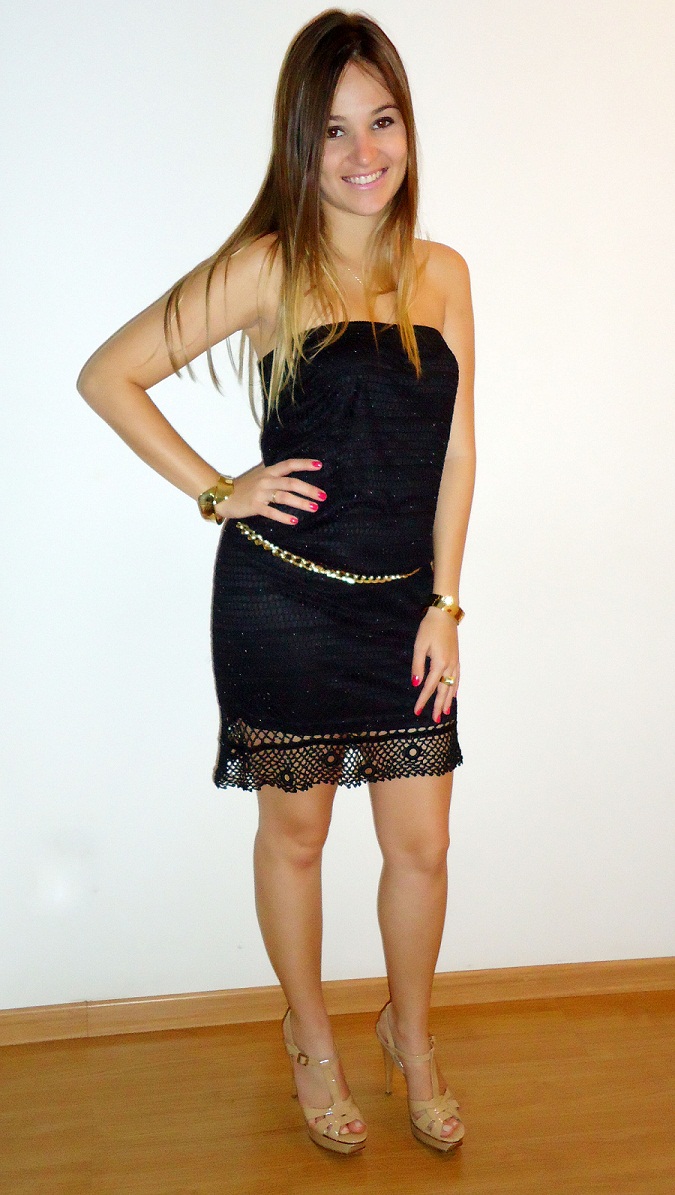 Gostaria de saber se fico bem vestida e chique se eu colocar um vestido preto de renda com sapatos, carteira e brincos dourados?