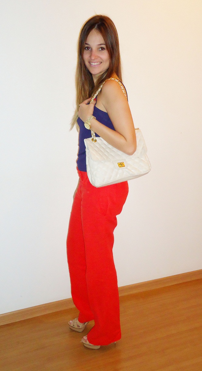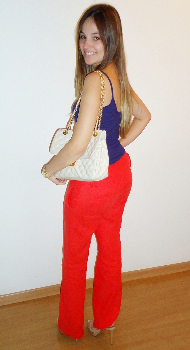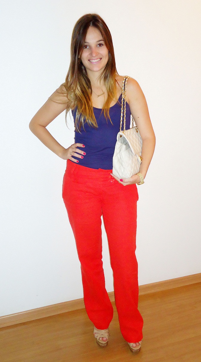 Falei que esse fim de semana ia tirar foto dos meus looks e como promessa é divida, aqui estão os looks de sexta, sábado e domingo. O look que usei ontem foi bem coloridão a la color blocking. Se tem uma moda que me conquistou foi essa, acho demais, moderno e super fashion. Pra quem ainda não se arriscou nessa mistura de cores, o verão é a melhor estação do ano para apostar nessa trend. Vamos ao look? As cores que usei foram: roxo + vermelho.