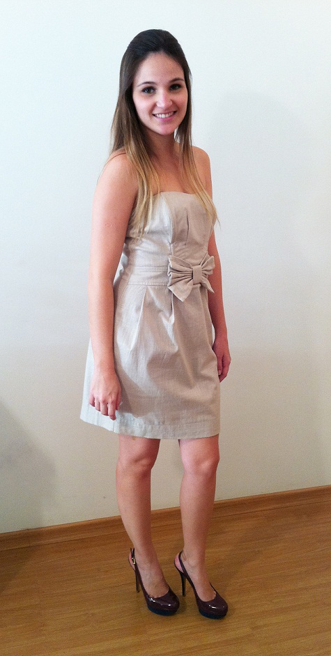 Vestido tomara que caia: Se você for madrinha esse vestido é uma ótima opção, pois ele tem uma modelagem mais sofisticada, super delicado e chique. O detalhe do laço dá um charme a mais no vestido. Dica: Tome cuidado com o comprimento do vestido, esse é o ideal, mais curto que isso nem pensar, é completamente deselegante pra ocasião.