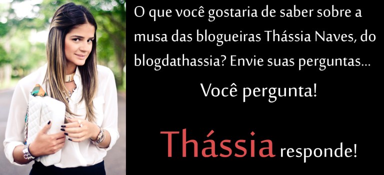Meninas, mandei um recado para a Thássia, do Blog da Thássia no twitter convidando-a para uma entrevista, um bate-papo para o blog, no tópico “Vida de blogueira”… Ela topou… Daí, pensei “Porque não fazer algo diferente? Ao invés de bolar as perguntas e enviar.. Porque não perguntar o que as leitoras gostariam de saber da Thássia?!” Pensando nisso… aqui está o espaço pra vocês enviarem suas perguntas, o que vocês gostariam de saber sobre Thássia Naves? Ou podem enviar as perguntas pela FanPage do blog.