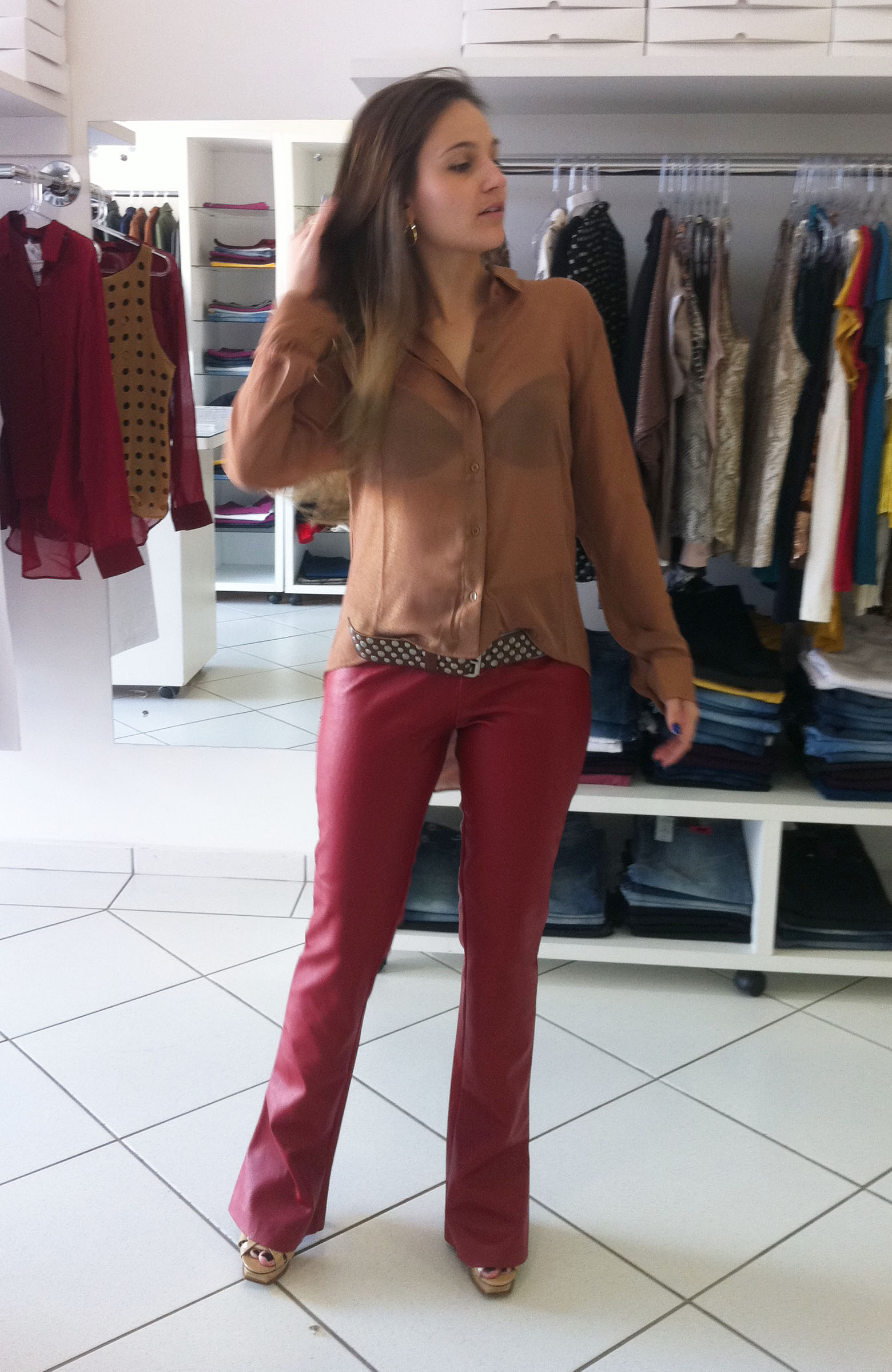 Que tal um look bapho da Impactto Modas pra arrasar nessa sexta-feira 13? Três super tendências em um único look. A calça flare já provou que veio pra ficar, sai coleção, entra coleção e ela permanece firme e forte, nos mais variados tecidos e recortes. O couro nem preciso comentar, né? É peça-chave na estação mais fria do ano, sem contar que modela o corpo e fica um arraso! Mas a queridinha da vez são as camisas, peça ímpar no guarda-roupa, que deixa qualquer look charmoso e chique – essa com uma leve transparência dá mais  leveza ao look.