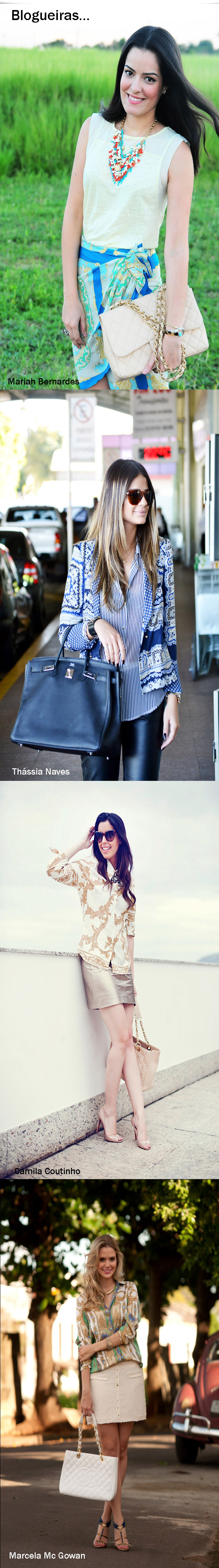 Com certeza vocês já viram alguma fashionista desfilando um estampa de lenço por aí? Geralmente são mais vistas em camisas e saias… Confiram!