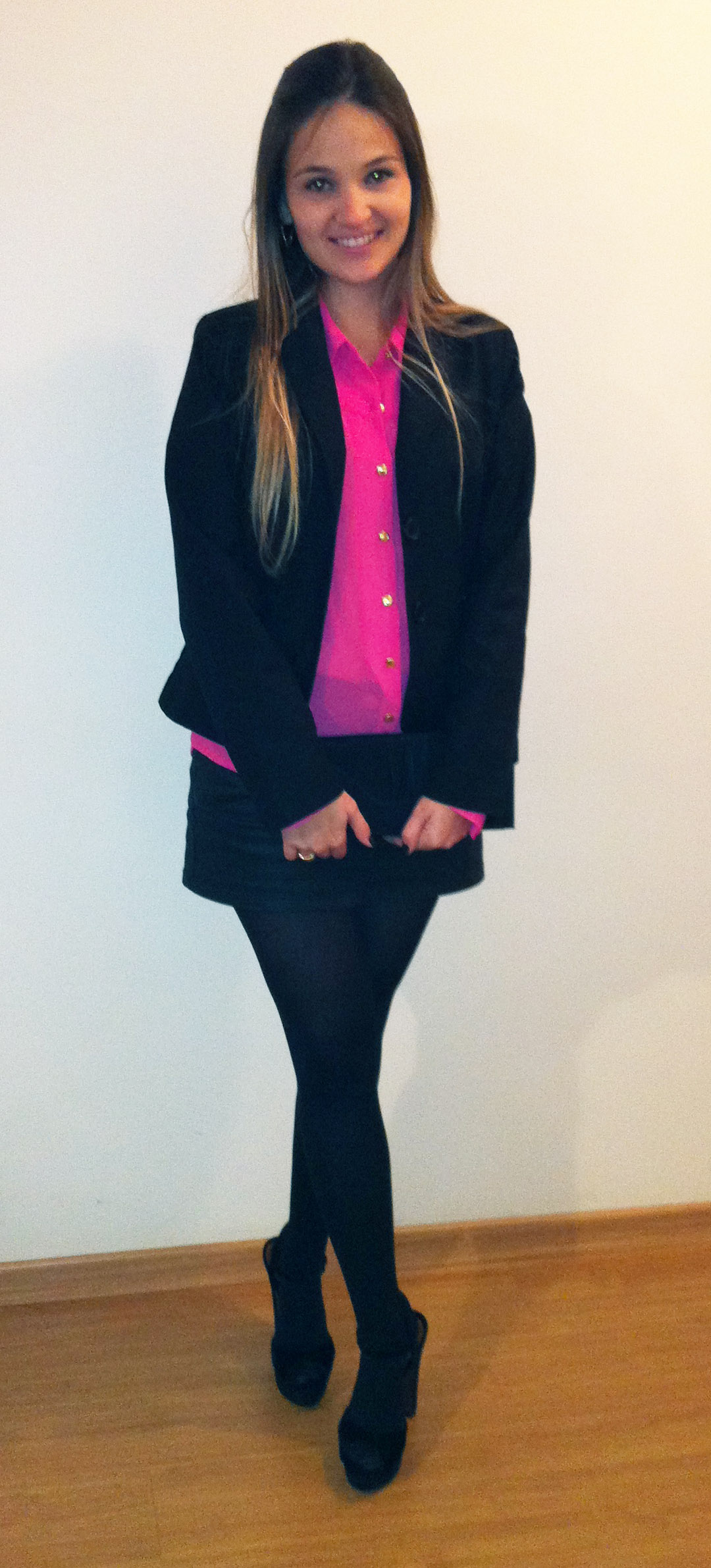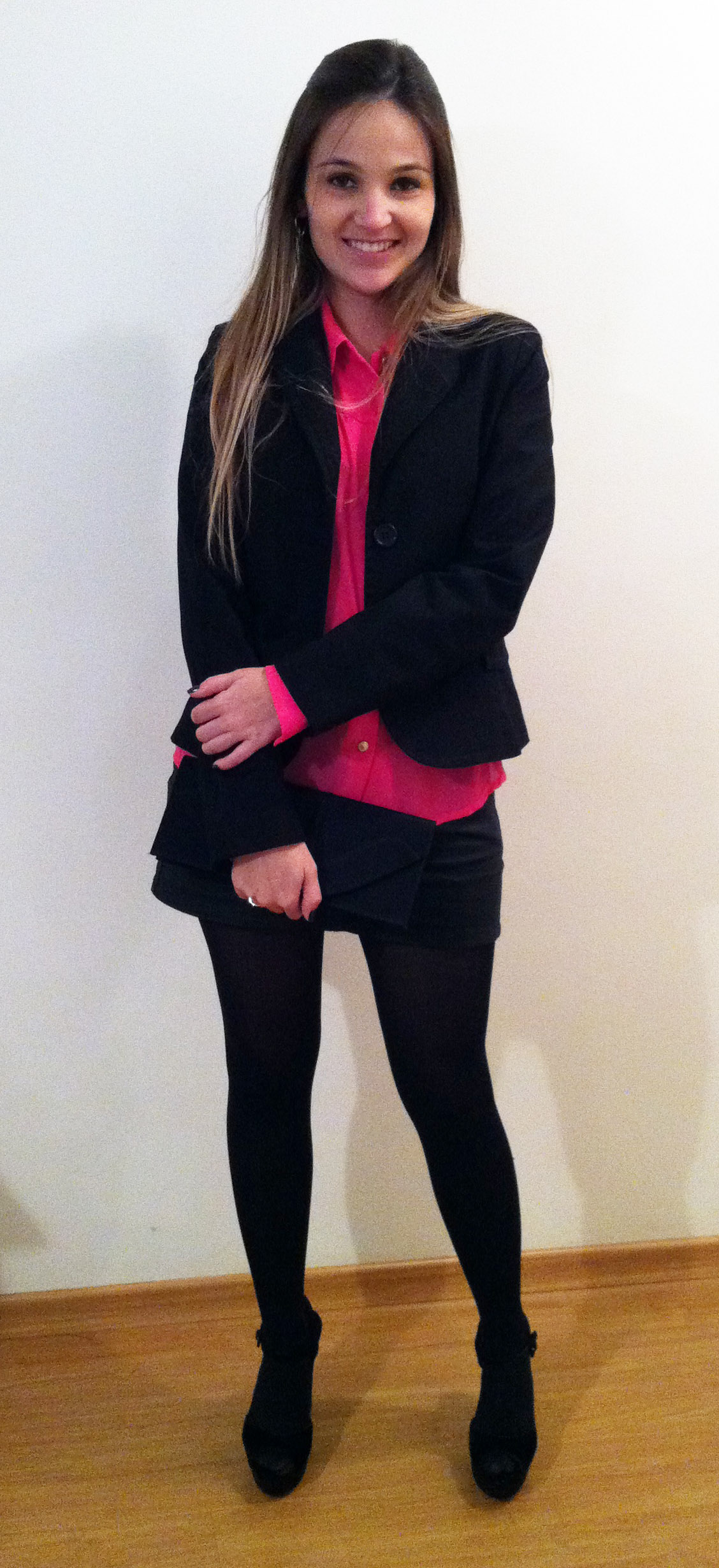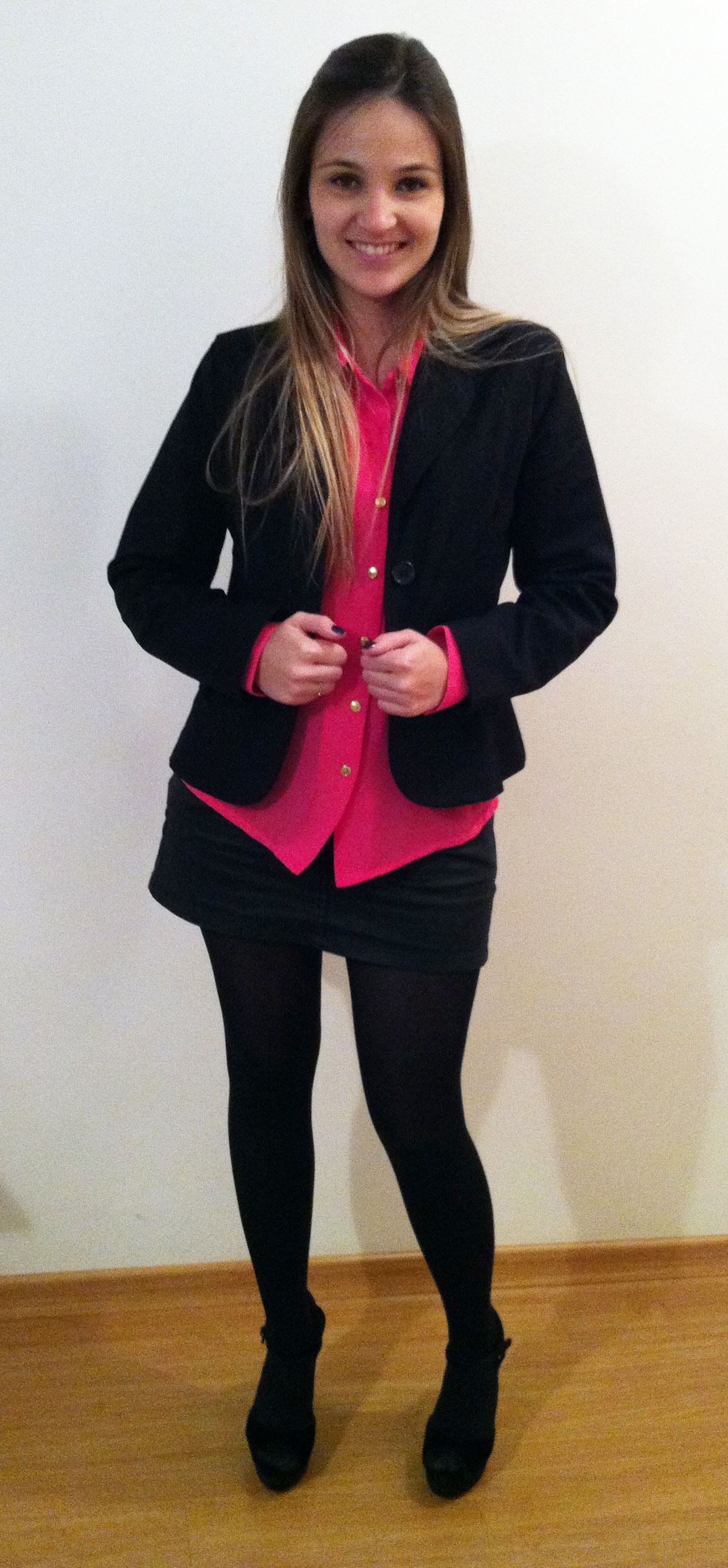 Sei que esse look está meio atrasado, afinal o feriado já faz quase uma semana. Além do dia 1 de maio ser feriado, dia do trabalhador, é aniversário do meu amor… Comemos pizza, bolo e depois fomos comemorar num barzinho com alguns amigos… E como estava bem frio, meu look contou com o auxílio da meia-calça e do blazer.