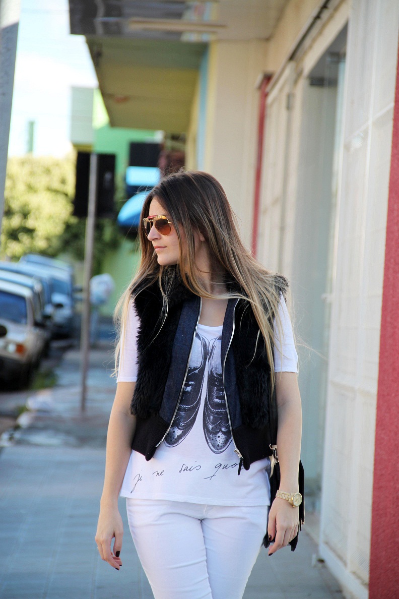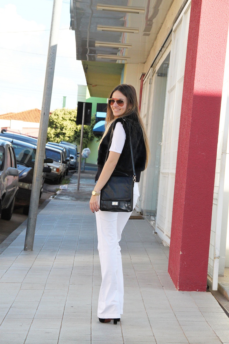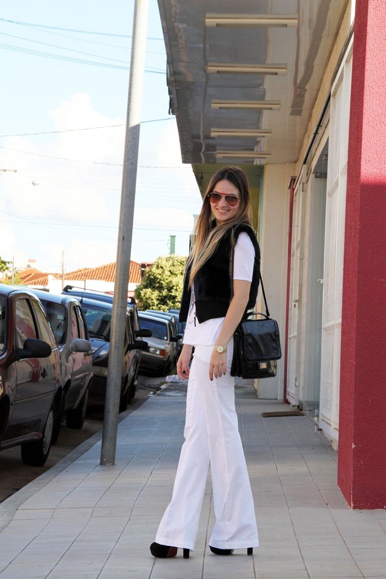 Essa semana o clima estava fresquinho, uma temperatura bem gostosa, usei esse look total white + colete de pelos para arrematar o visual.