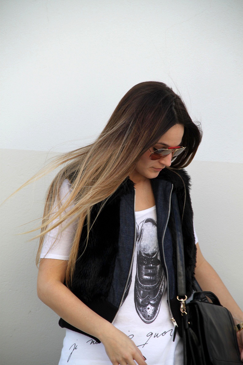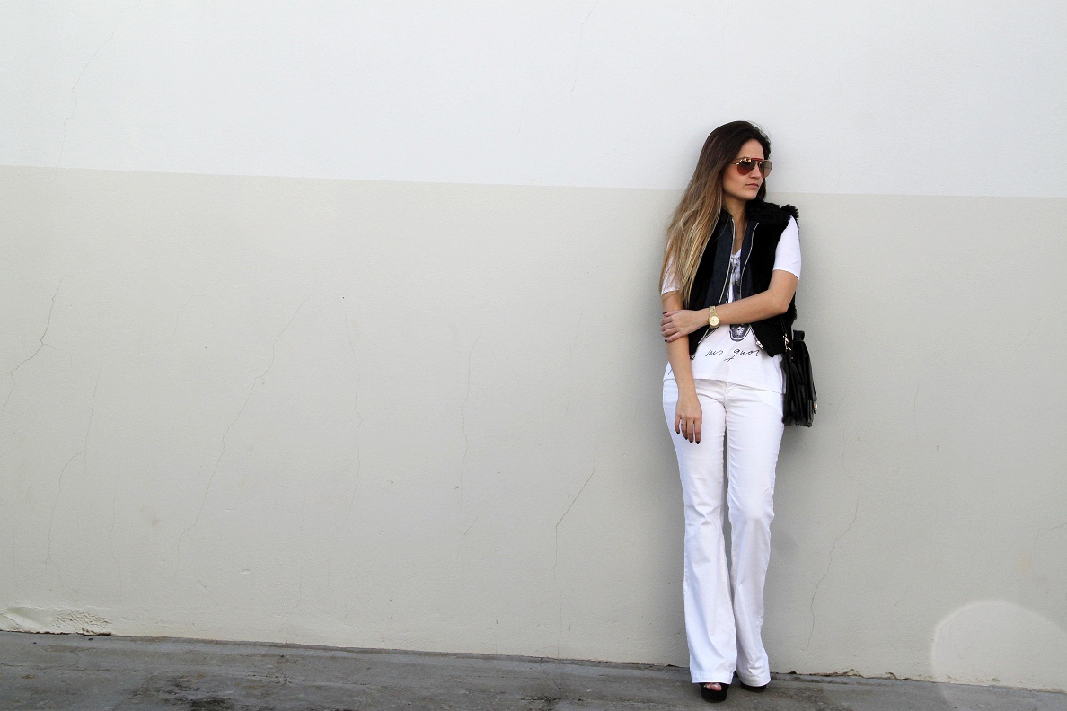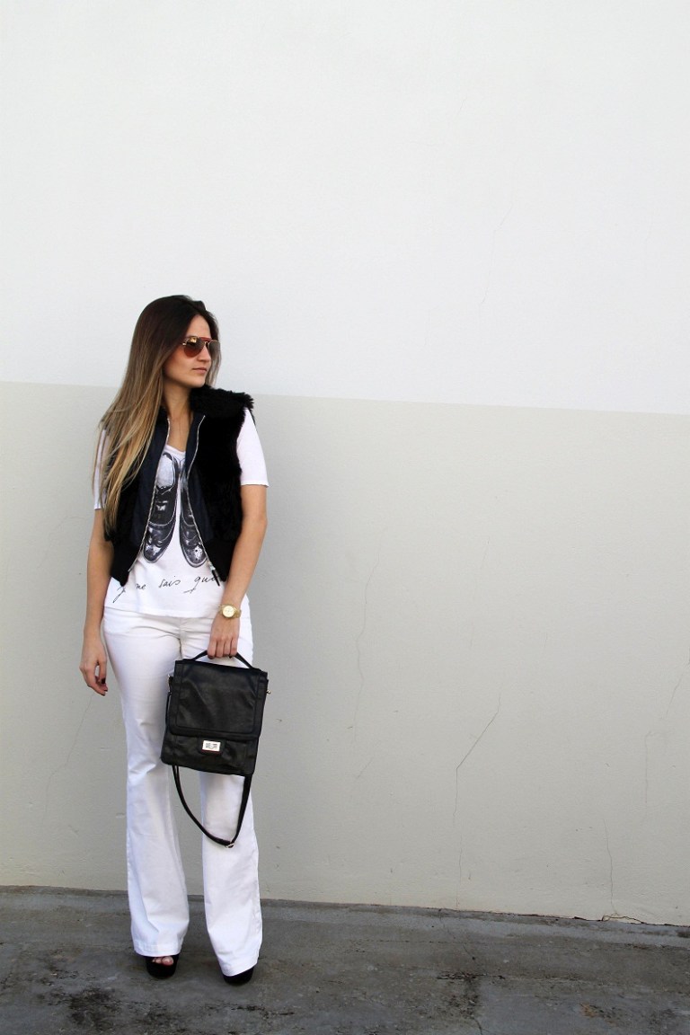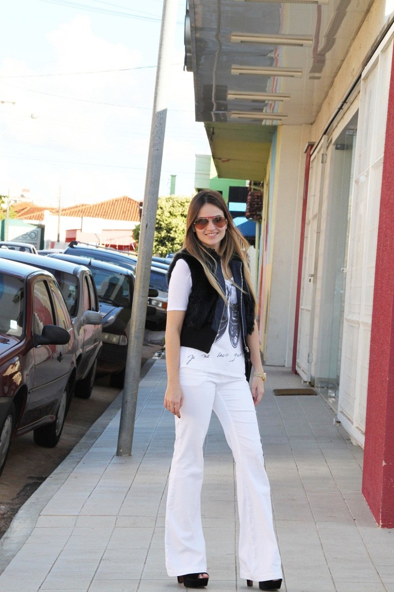 Essa semana o clima estava fresquinho, uma temperatura bem gostosa, usei esse look total white + colete de pelos para arrematar o visual.