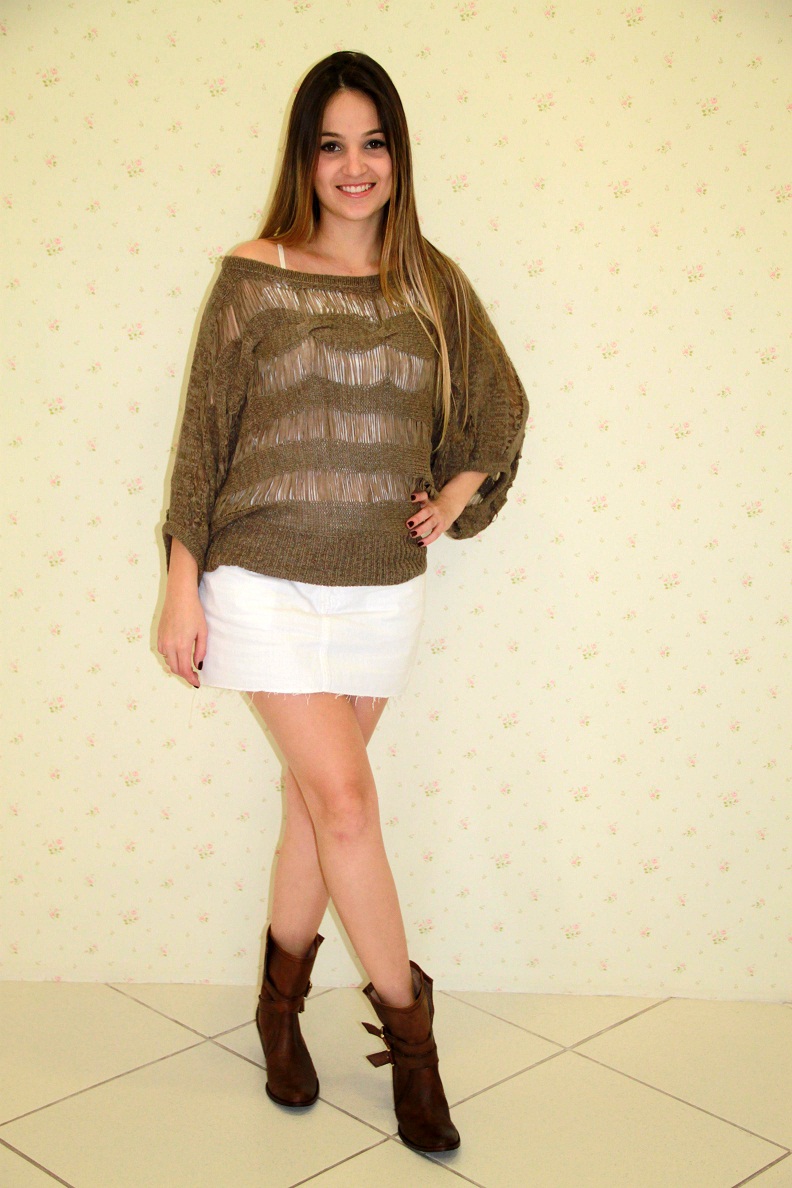 Depois da chuva, o clima deu uma boa esfriadinha por aqui… Dando uma espiada nos meus arquivos, vi que tinha um look super lindo e mais quentinho da Impactto Modas que ainda não tinha postado… É um look básico, bem neutro, no qual o tricô fez toda a diferença, dando charme e bossa a produção.