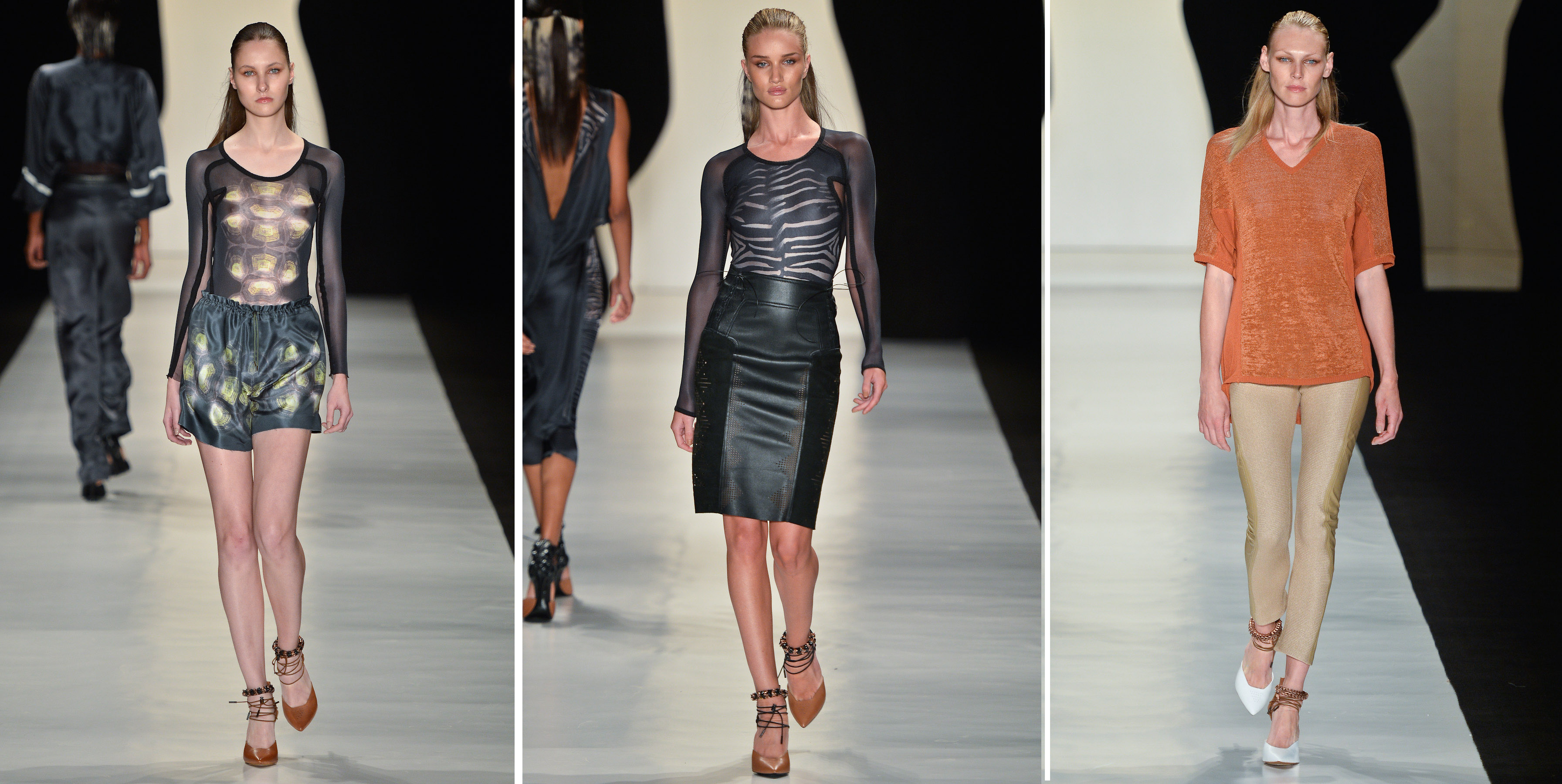 O desfile foi lindo, a coleção foi inspirada na África e trouxe tecidos bem leves com estampa animal print, com uma transparência bem sutil, em cores neutras, como o bege e preto e tons suaves de verde e laranja . Alguns modelos traziam recortes estratégicos que davam vida e personalidade ao look.