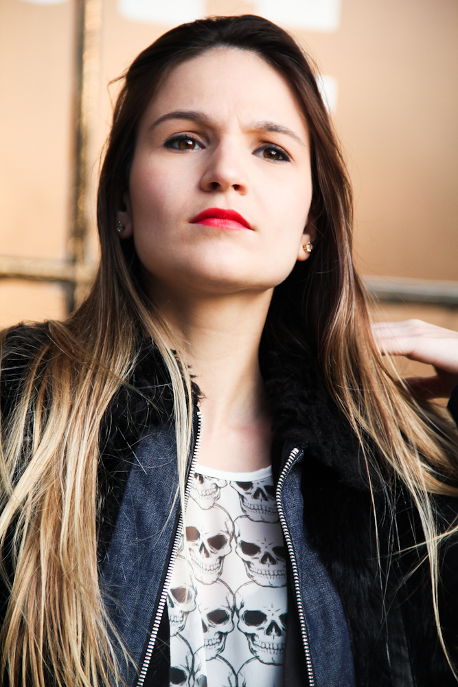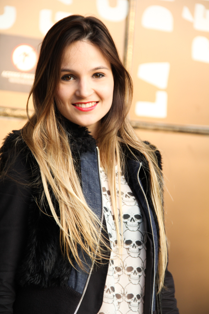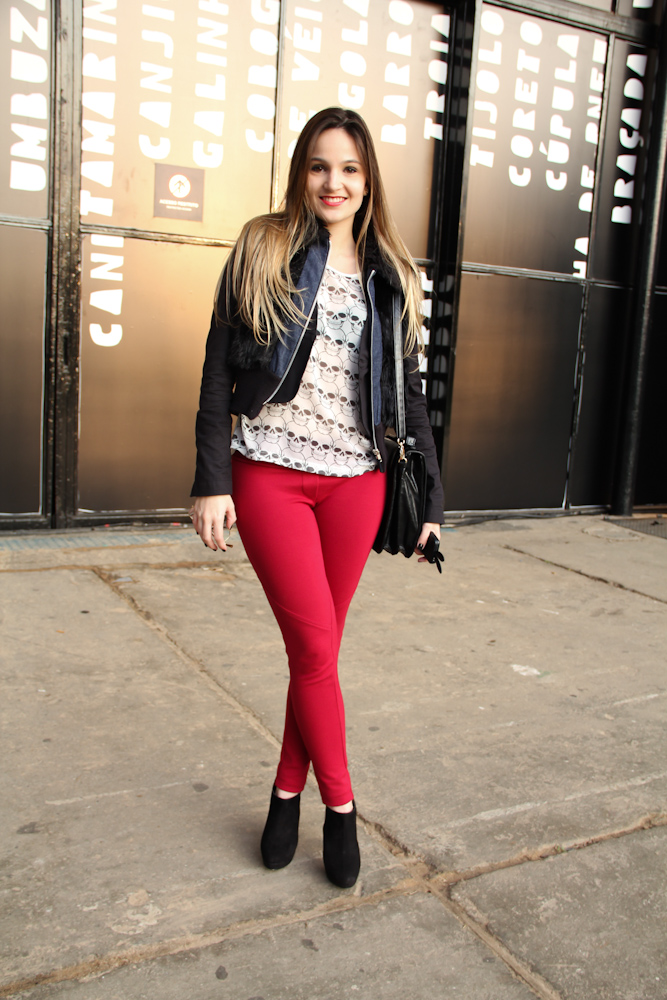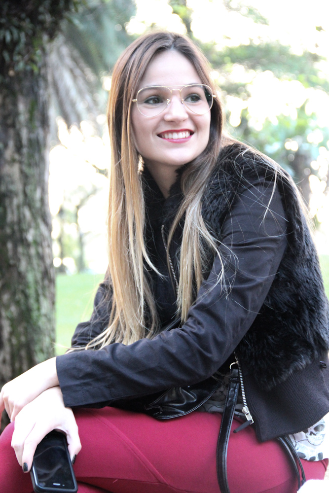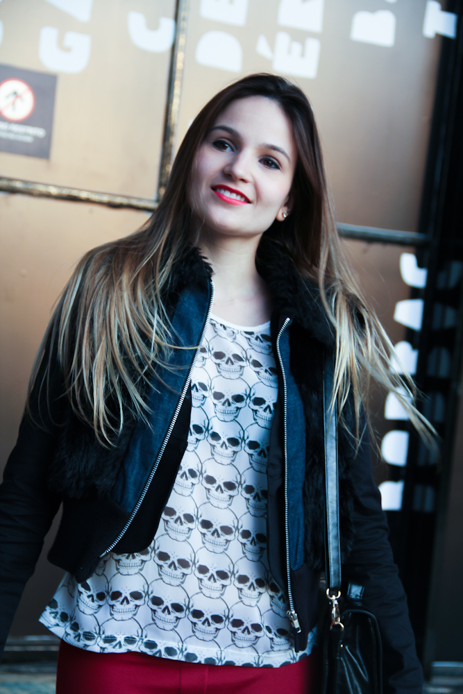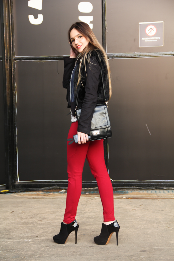 Para o segundo dia de desfiles resolvi ir mais “arrumadinha”, como só fui pra assistir o desfile da Ellus, deu até pra colocar um salto, hehe… Use minha red pants + t-shirt de caveiras + blazer + colete de pele. Achei que ficou uma proposta super cool e moderninha. Ahhhh e é claro, meu mais novo óculos de grau – aviador dourado – Ray Ban – gostaram? Ele fez o maior sucesso nos corredores da Bienal.