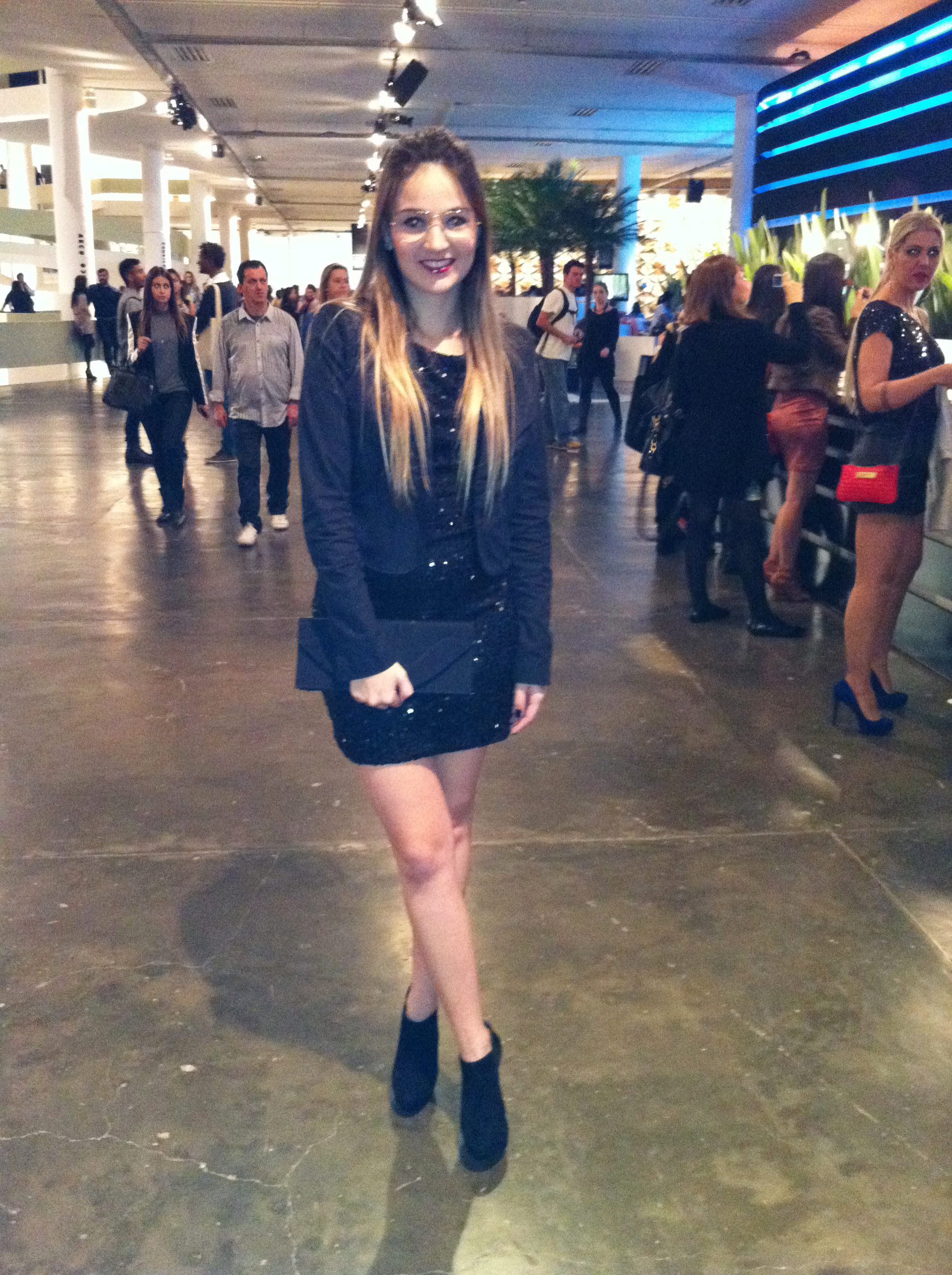 No terceiro dia de SPFW acabei nem tirando foto do look. Mas no quarto e último dia de evento (pra mim) fotografei o look pra mostrar pra vocês. Como tirei do celular não ficou lá aquelas coisas, mas é só pra registrar mesmo. Na quinta-feira, 14, fui pra Bienal assistir o desfile da Osklen e como era a noite e meu niver me produzi nos brilhos hahaha!