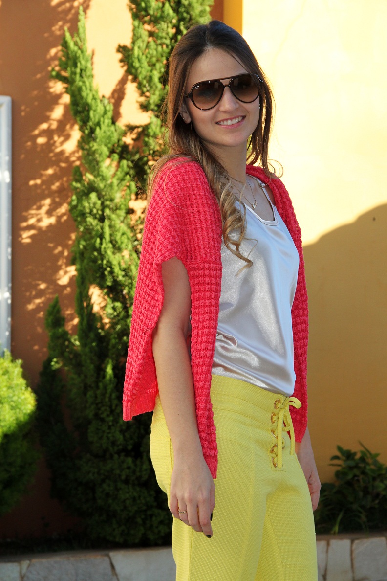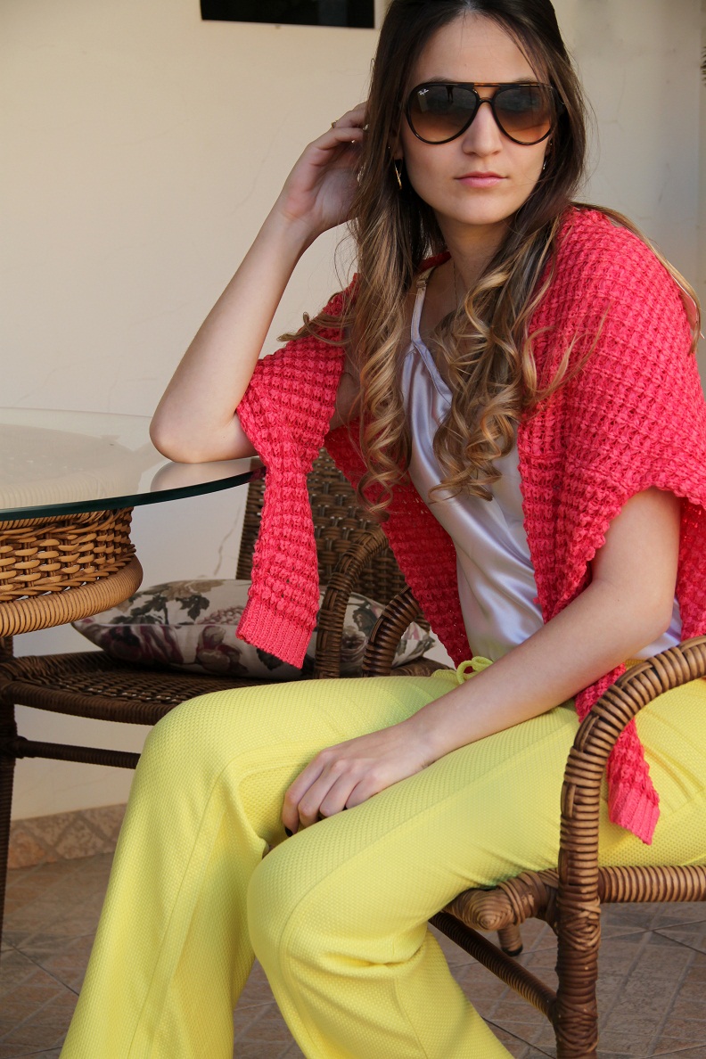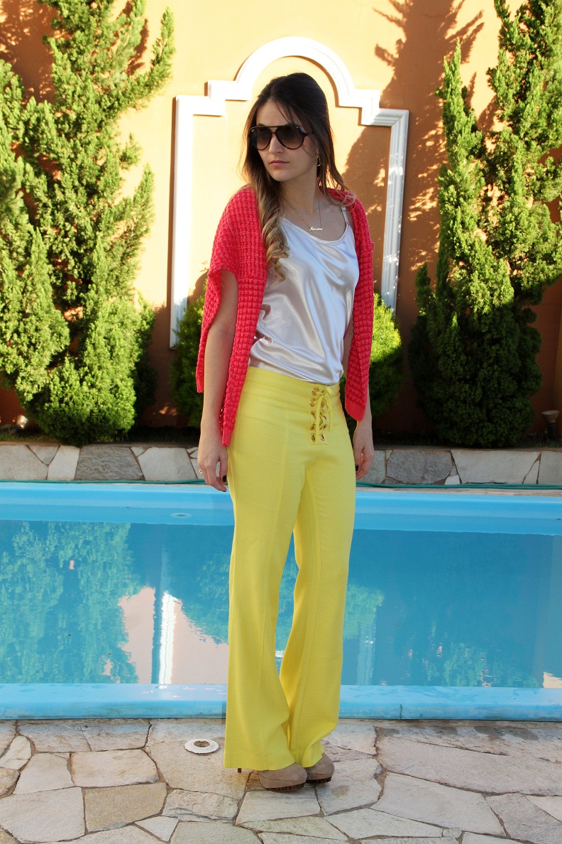 O look da Impactto Modas de hoje é super inspirador!! Para arrasar no final de semana. Seja num almoço com as amigas ou uma festa de aniversário, o look é super moderno e elegante, peças e cores de verão, mas com um toque bem invernal. O mix de cores, amarelo e rosa ficou incrível… Esse tricô é um luxo!