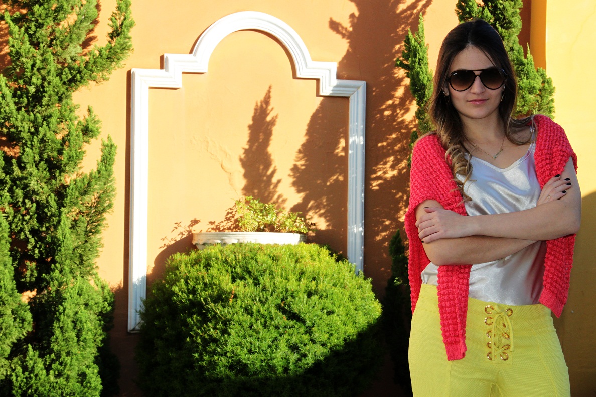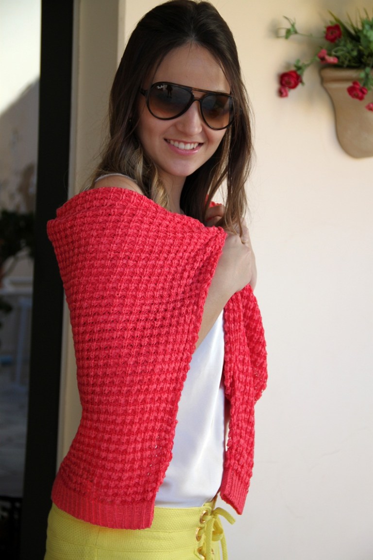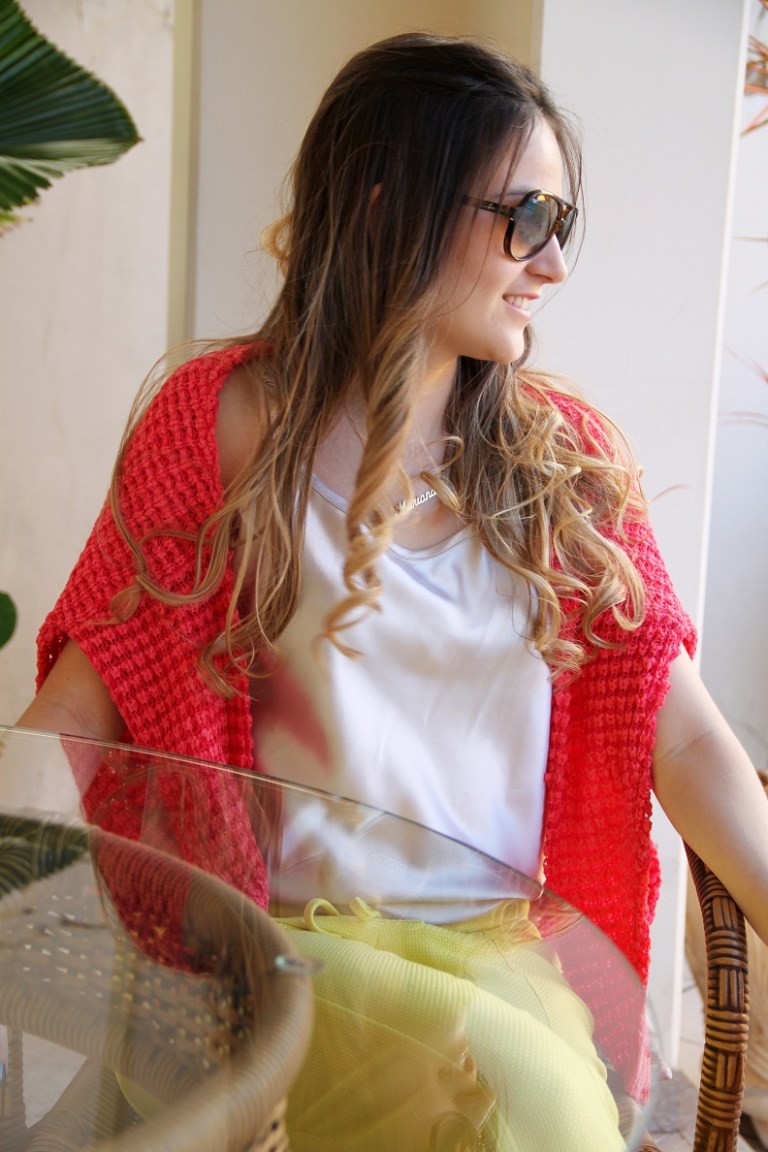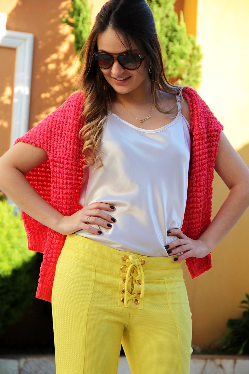O look da Impactto Modas de hoje é super inspirador!! Para arrasar no final de semana. Seja num almoço com as amigas ou uma festa de aniversário, o look é super moderno e elegante, peças e cores de verão, mas com um toque bem invernal. O mix de cores, amarelo e rosa ficou incrível… Esse tricô é um luxo!