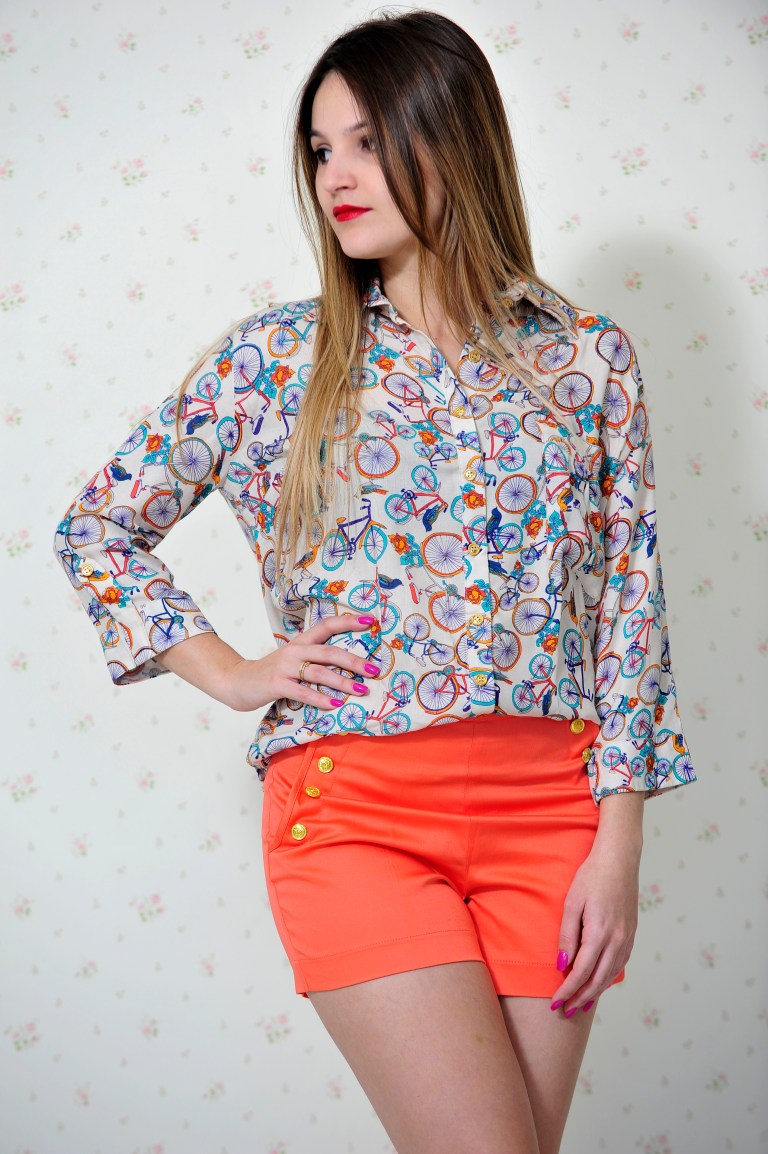 O dia amanheceu quente, porém nublado, então resolvi postar um look Impactto Modas que se adeque bem a esse dia “indeciso”… Escolhi um shortinho laranja de cintura alta com botões nas laterais + camisa com estampa de bicicleta. Achei que a combinação ficou super charmosa e despretensiosa, a cara dessa sexta-feira.