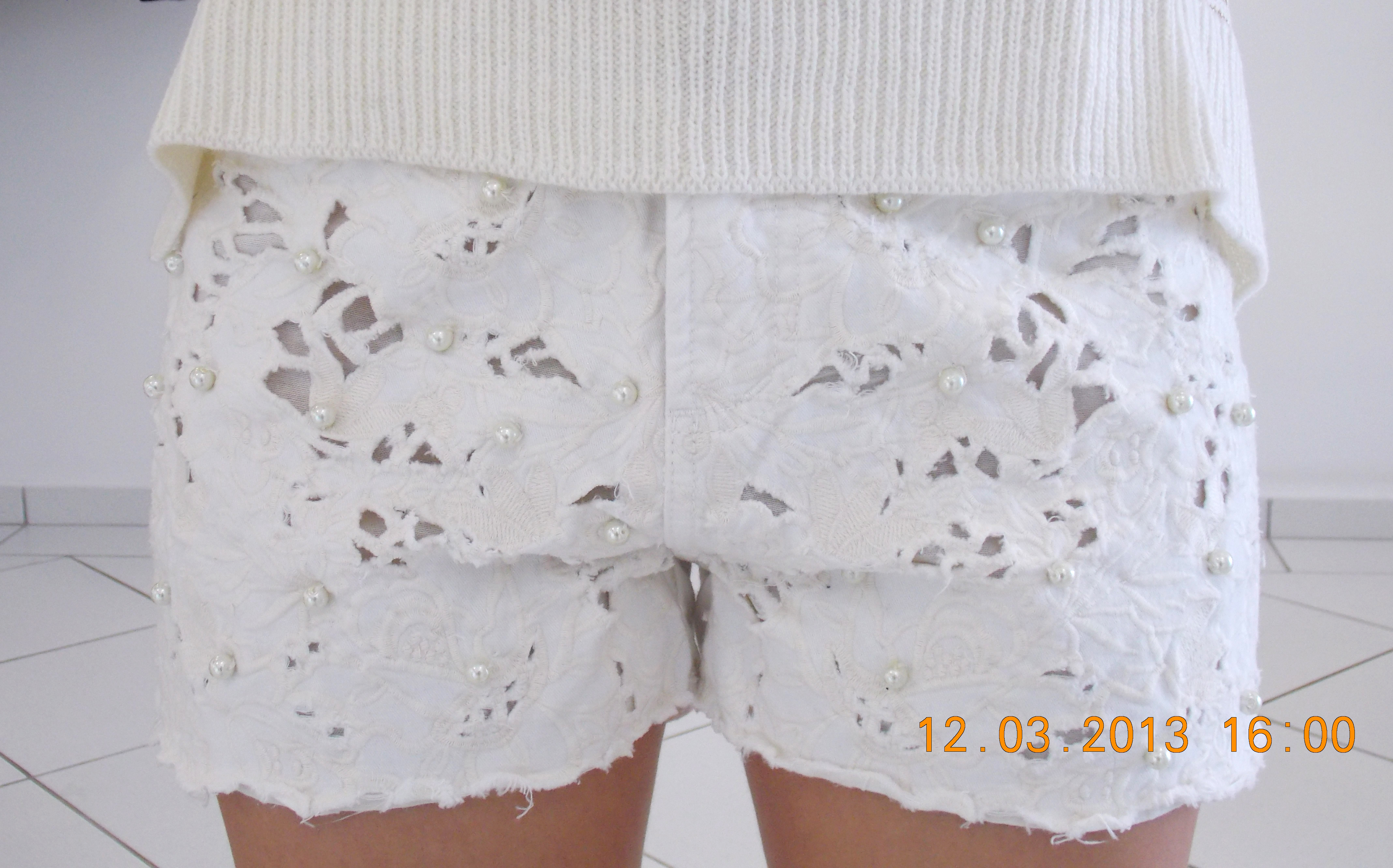 Look 2 – Short bordado com pérolas + tricô com fios de ouro.