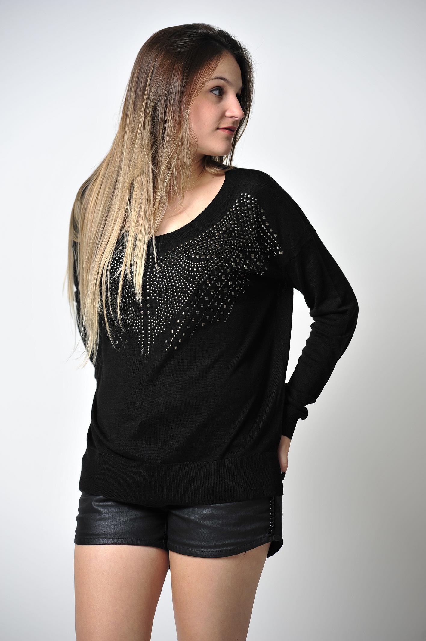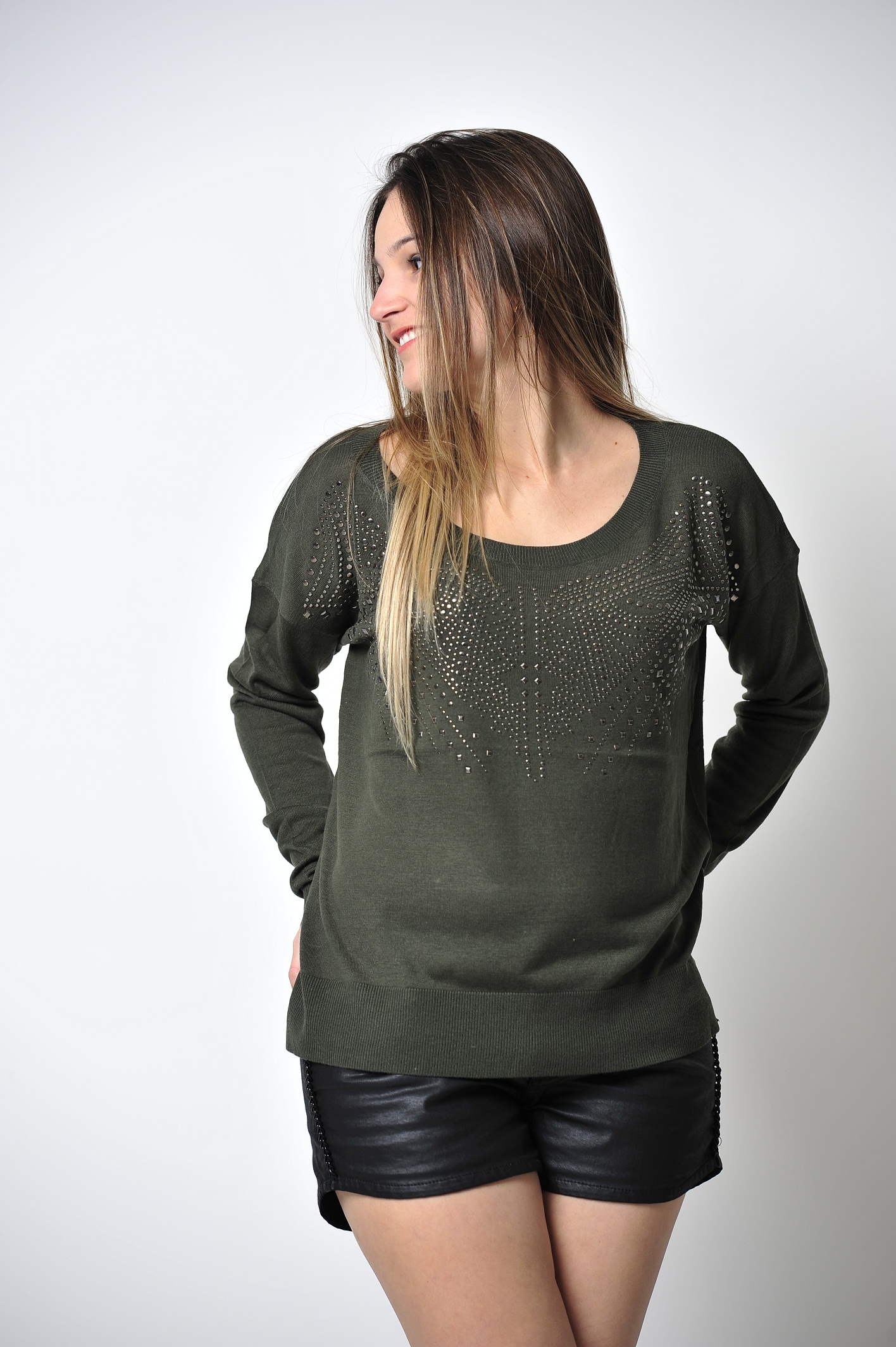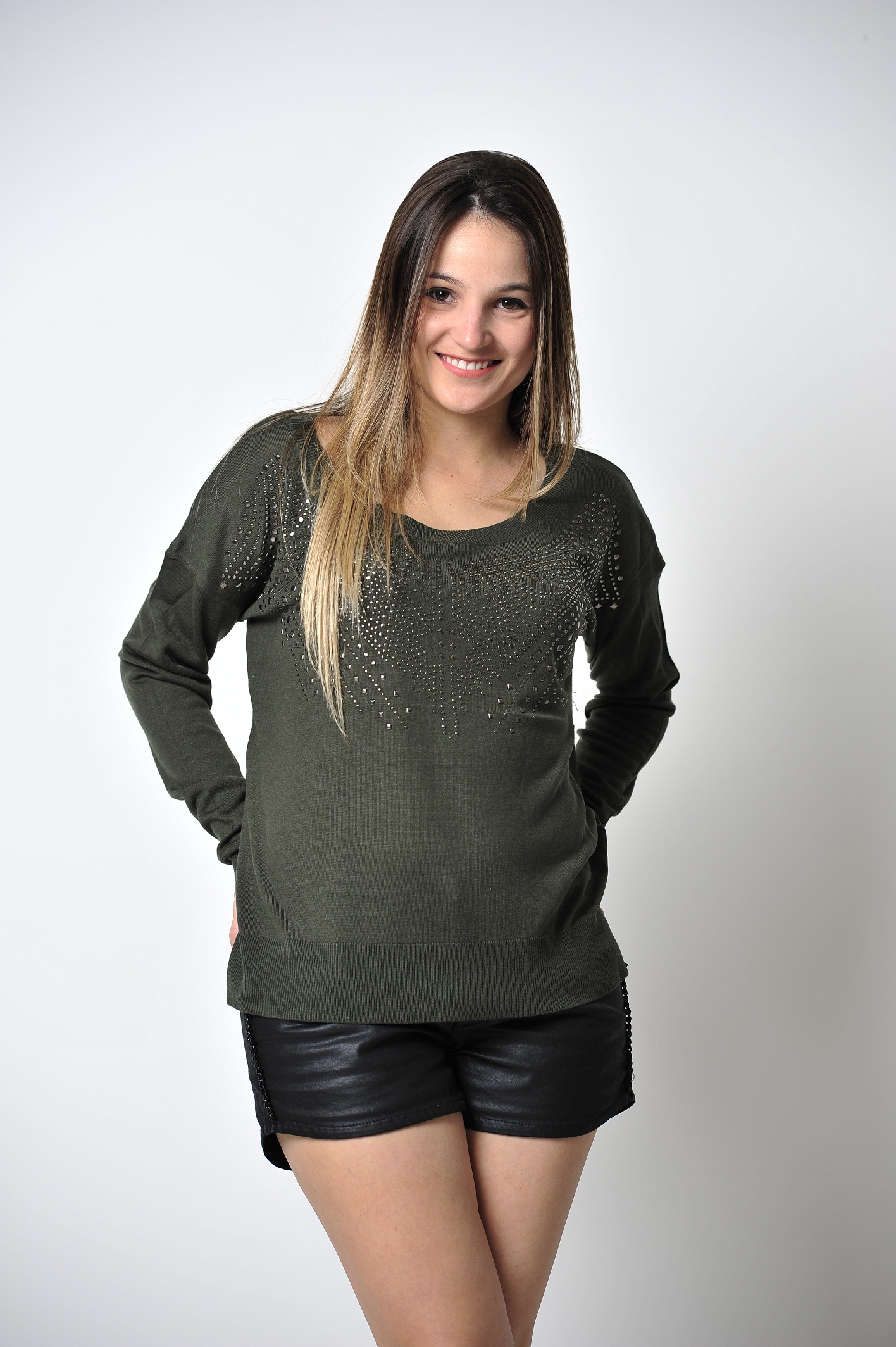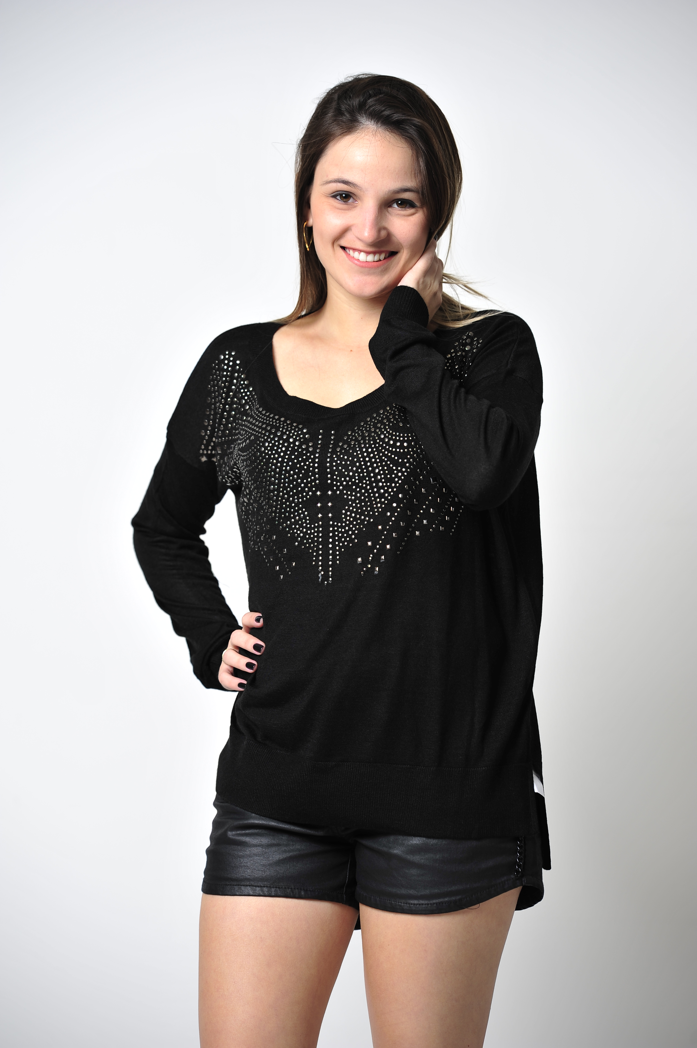 Desculpem o sumiço meninas. Hoje o look da Impactto Modas está em dose dupla. A peça que escolhi foi o tricô de tachas Zara inspired. O tricô é lindo e super estiloso, e está disponível em três cores: preto, verde militar e vinho. Coloquei com um short resinado. Confiram!