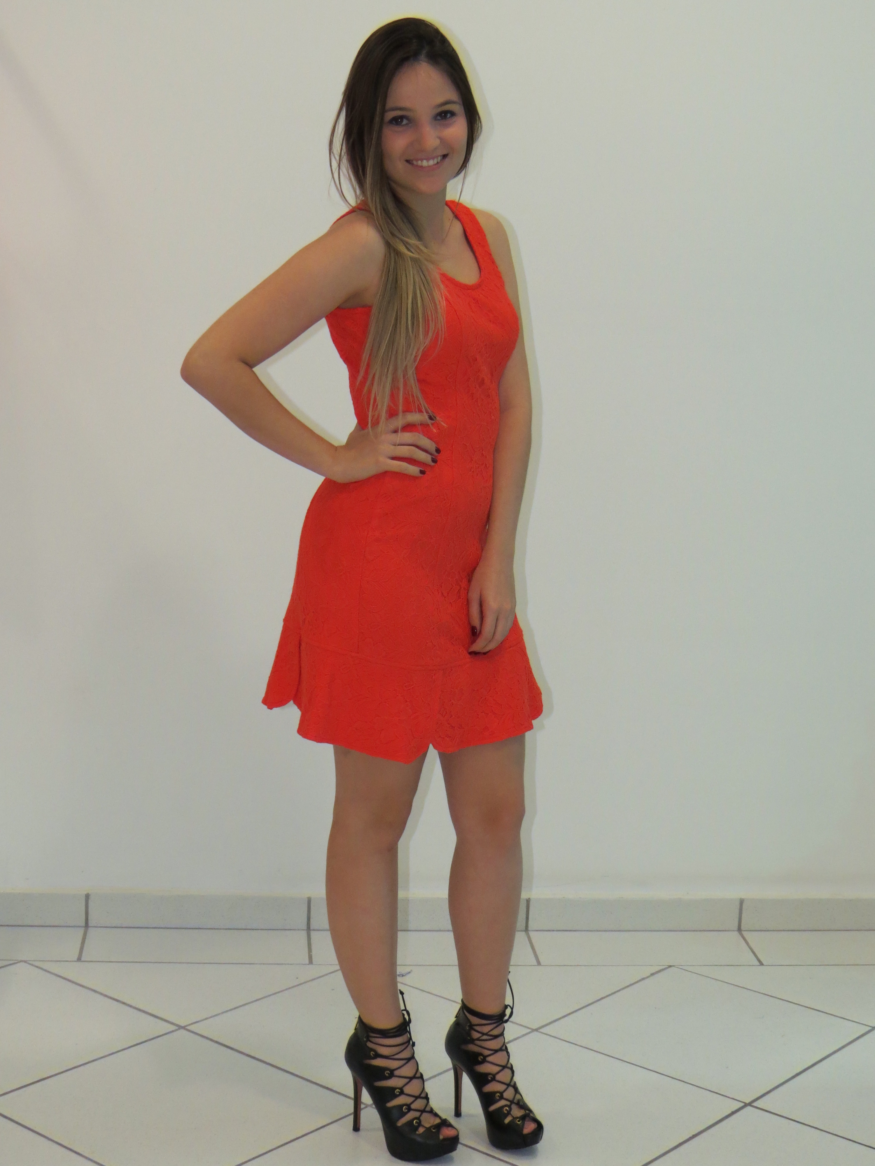 Bom dia meninas!!! Nada melhor que começar a semana com um look lindo e mega iluminado da Impactto Modas. Esse vestido laranja de renda já e da coleção de verão. Adoro renda, acho que a mulher fica super feminina. Os babadinhos na barra também deixam o modelo mais charmoso. E o bacana é que é uma peça super versátil, que podemos usar em ocasiões mais básicas, como um aniversário ou batizado durante o dia, colocando uma rasteirinha e acessórios mais neutros. Ou até mesmo em produções noturnas, como uma festa ou um jantar, basta colocar um saltão poderoso e acessórios glamorosos. Legal, né?