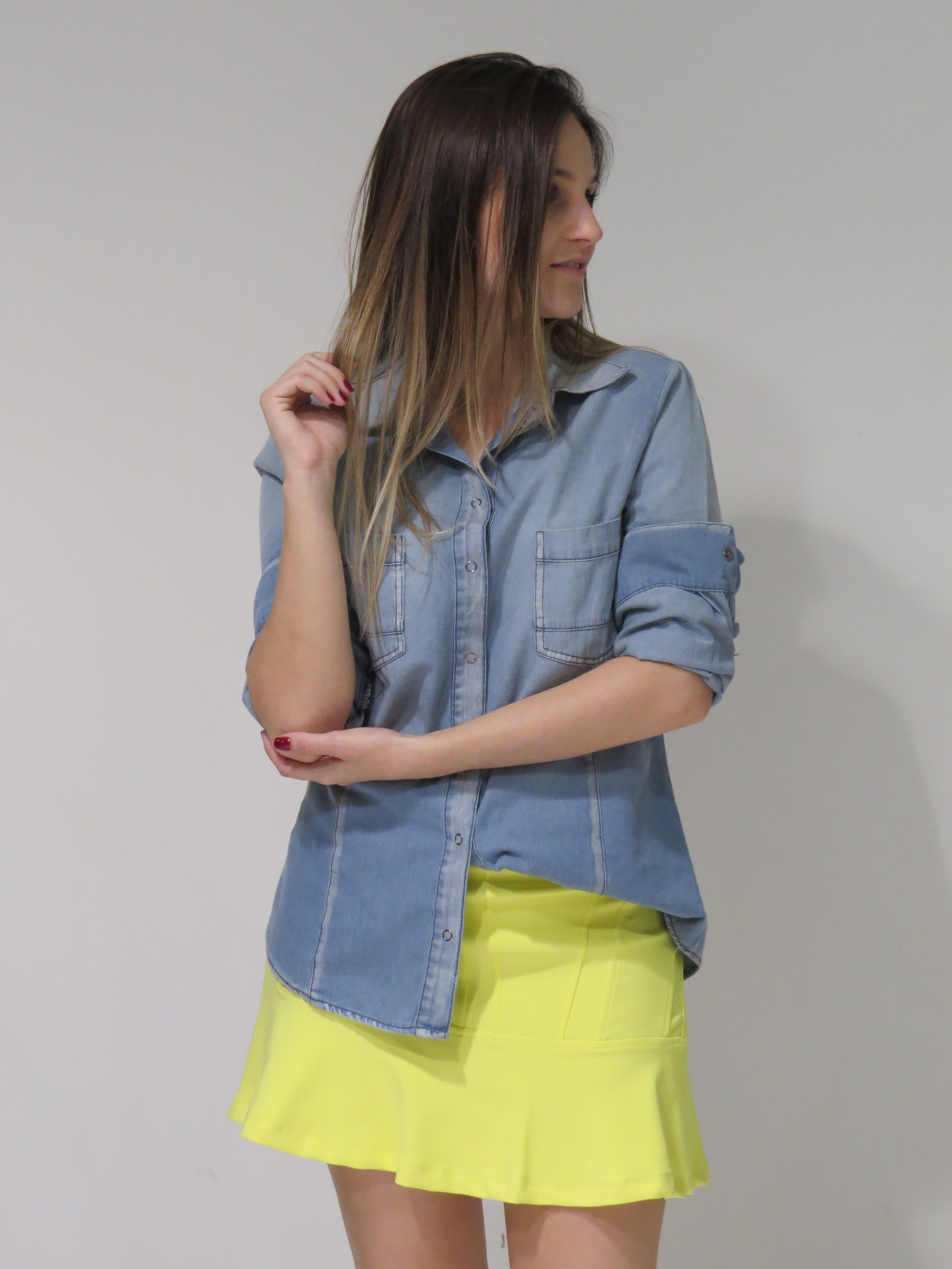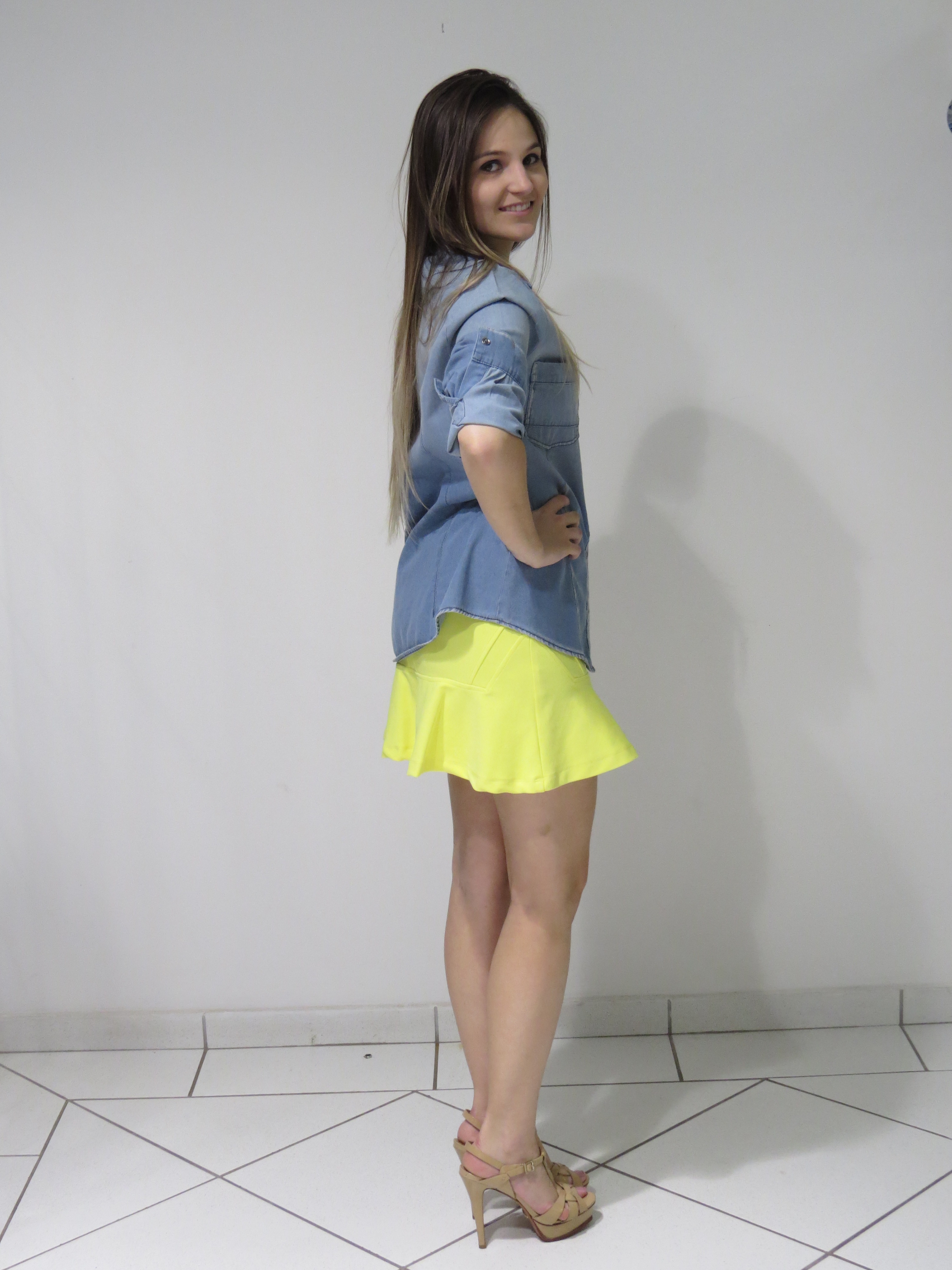 Look: Impactto Modas – Camisa jeans, CLIQUE AQUI – Saia amarela, CLIQUE AQUI!
