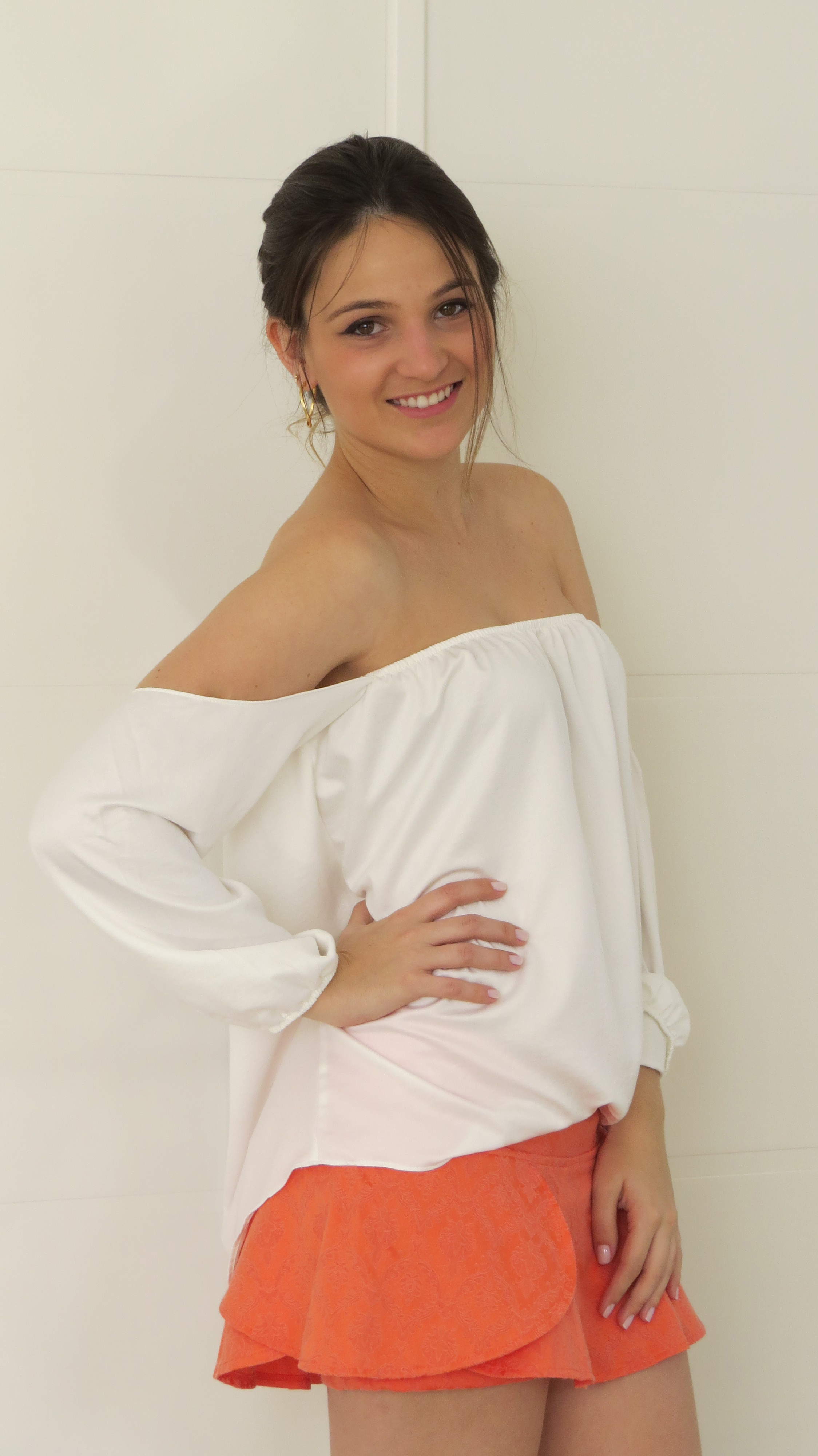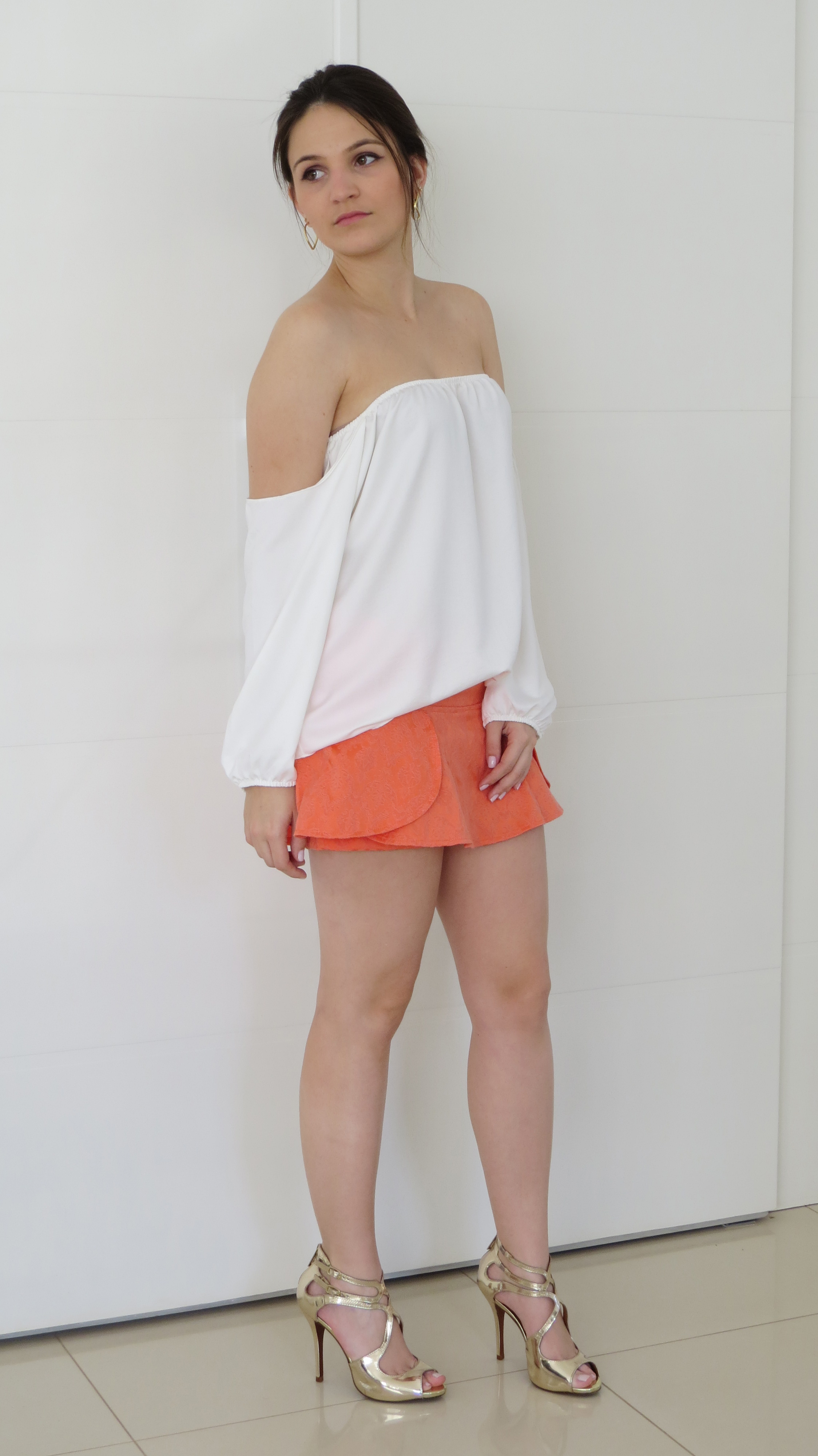 Olá meninas, como eu disse no post anterior o short/saia é o novo queridinho do verão. O baca é que uma peça super usável e versátil, podemos usá-lo durante o dia e também a noite. Sem contar que unimos a beleza da saia com o conforto do shortinho. O look da Impactto Modas de hoje é com um modelinho de jacard, laranja, super fofo. E pra deixar a produção ainda mais linda e com uma pegada ousada, coloquei a blusa branca com ombros a mostra. Que atualmente é minha peça preferida. Vejam!