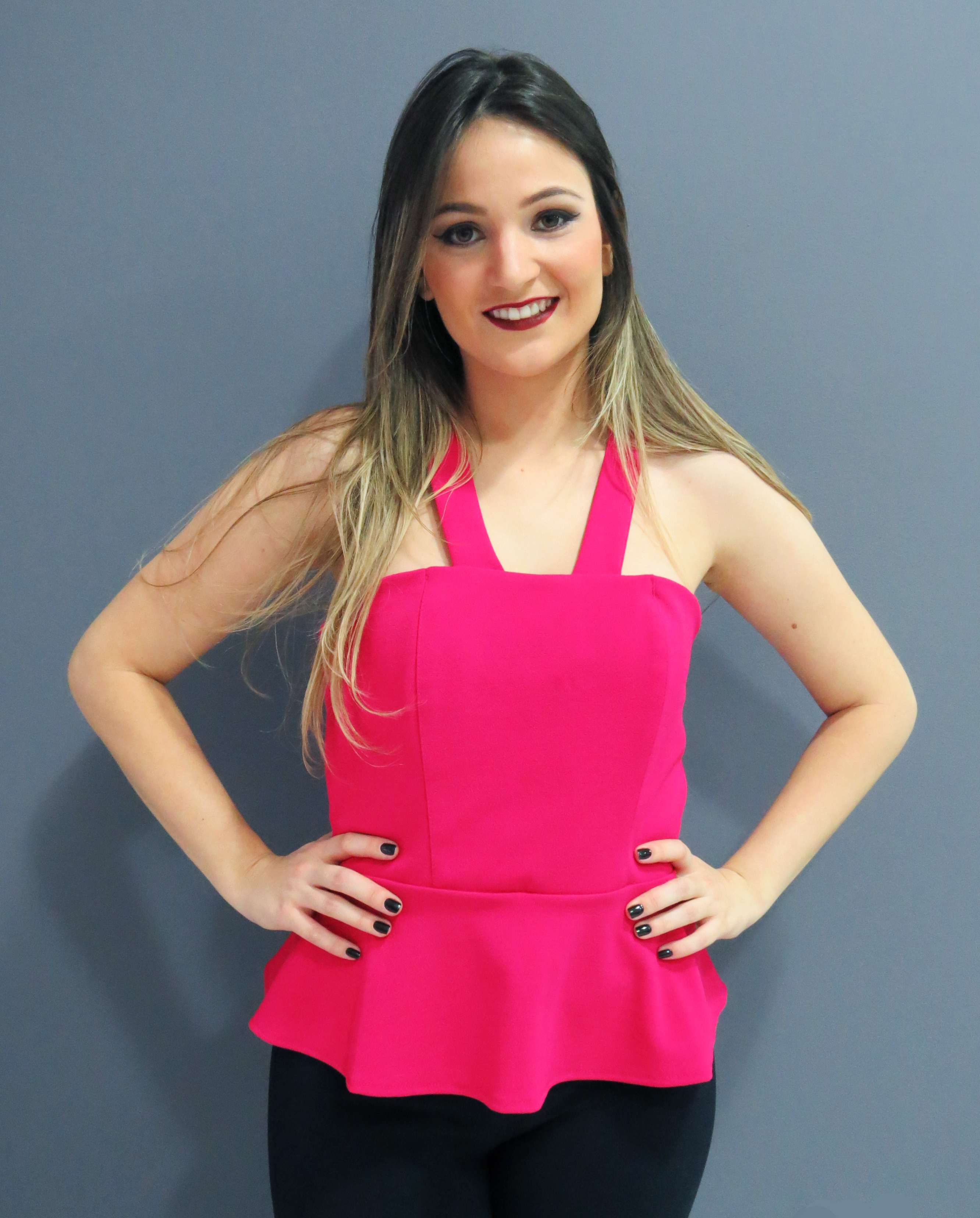 Bom dia meninas, segunda-feira preguiçosa, né? O look que a Impactto Modas traz hoje é com uma blusa peplum maravilhosa, que leva o nome da blogueira Thássia, por remeter a um modelo semelhante ao que ela já usou. A blusa peplum em crepe na cor fucsia é a forte tendência pra esse verão. O recorte na cintura + babado modelam o corpo, afinando a silhueta.