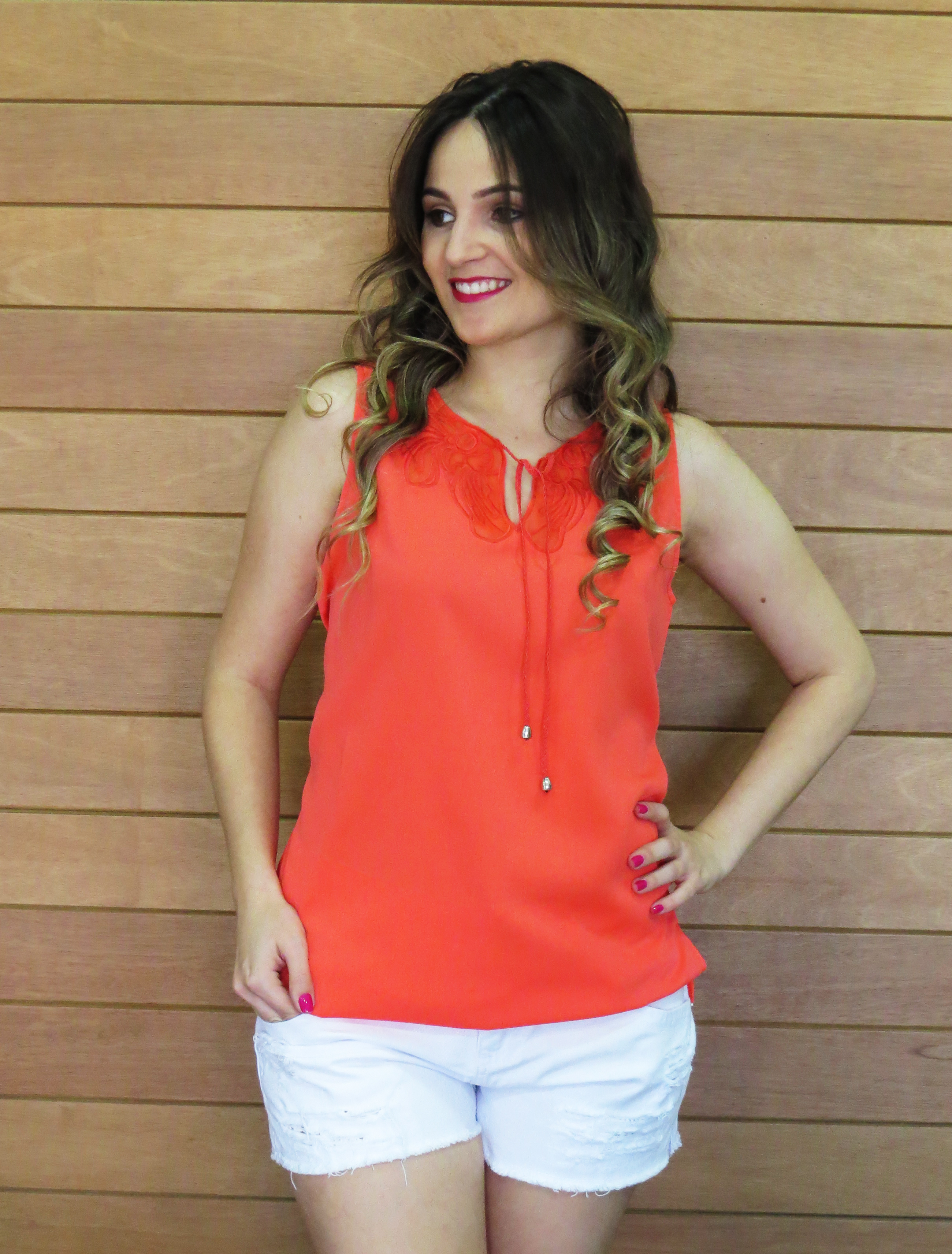 Bom dia gente!!! O calor tá aí… e o verão já tá quase batendo na porta. Então nada melhor que deixá-lo entrar com looks mega coloridos para alegrar nossos dias! O post da Impactto Modas de hoje vem com uma blusa toda lindinha, em várias cores: azul royal, pink, verde e laranja. Tem na preta também, mas esqueci de tirar a foto.