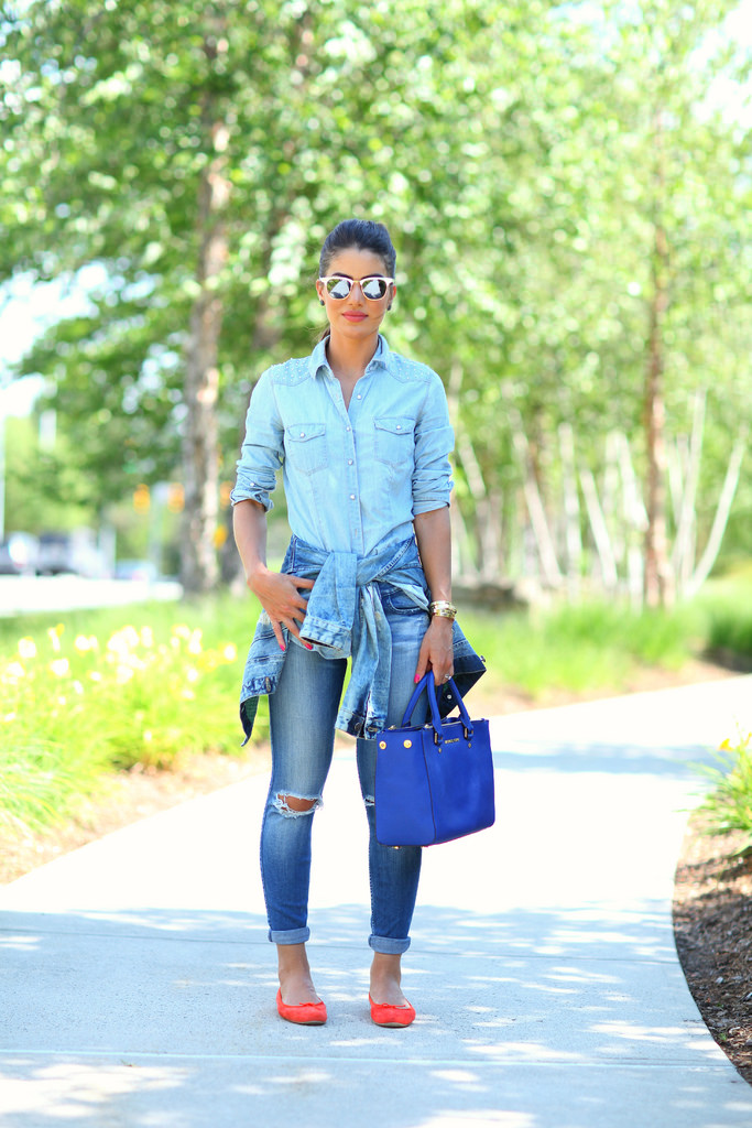 Das três, a camisa jeans é minha preferida. Com ela me sinto sempre moderna e bem vestida, independente da ocasião, seja para um dia de trabalho, ir à faculdade ou para sair com as amigas. E o mais bacana é que posso usá-la de mil e uma maneiras: seja em um look total jeans, abotoada ou aberta, com sobreposições, com nó, sobre um vestidinho, etc… Vejam algumas ideias!