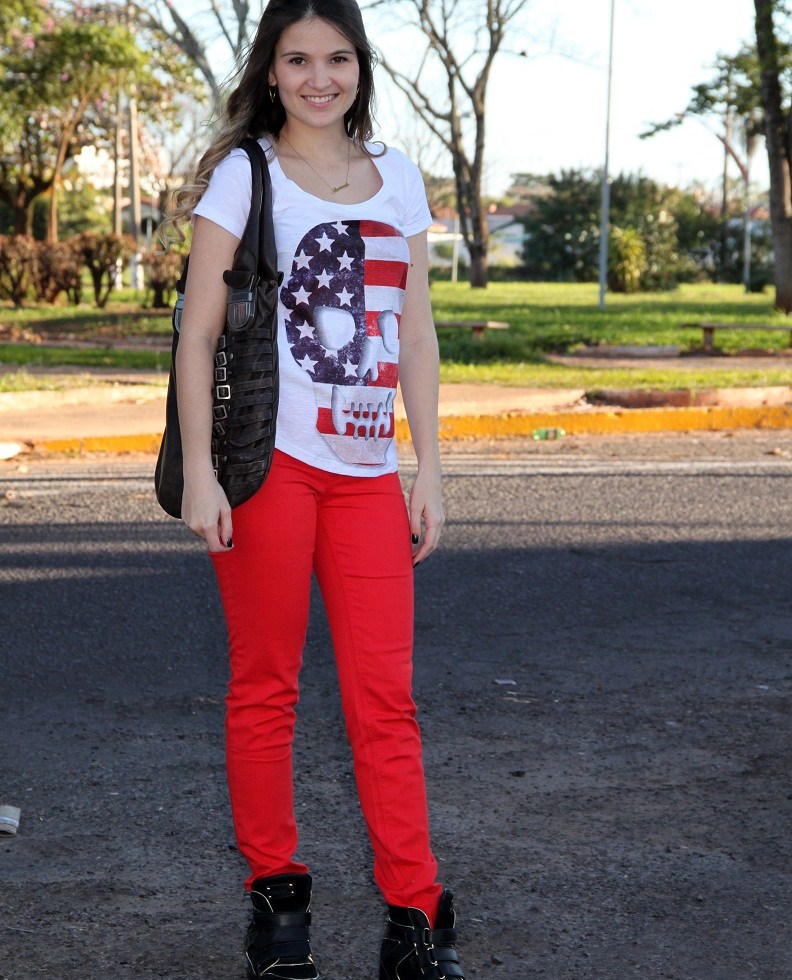 Look Impactto: Red pants + caveira